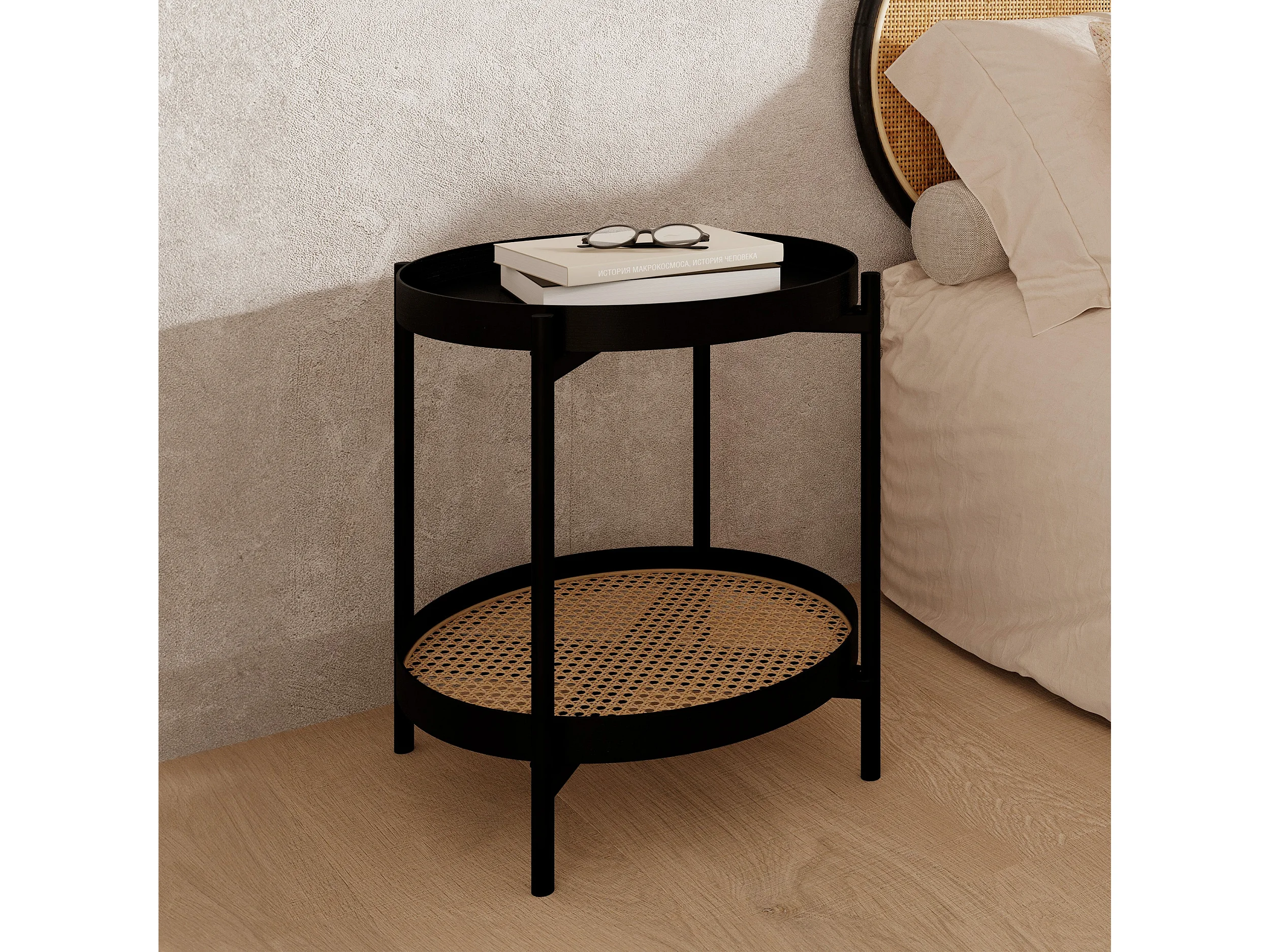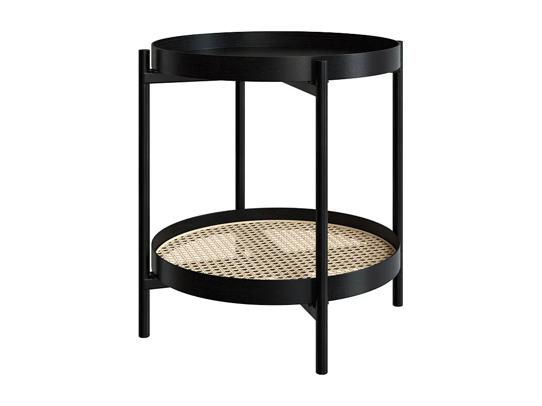 Mesa de centro de madera en mindi negra y caña D49 cm - Lukut