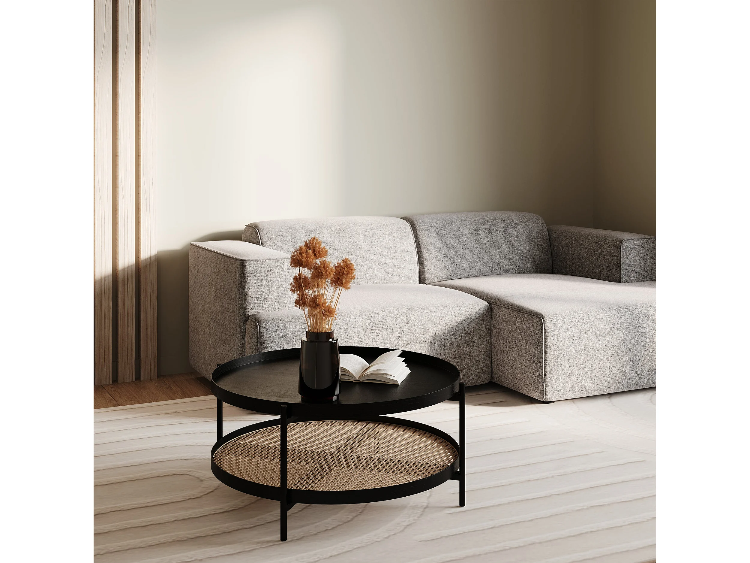 Mesa de centro de madera en mindi negra y caña D84 cm - Lukut