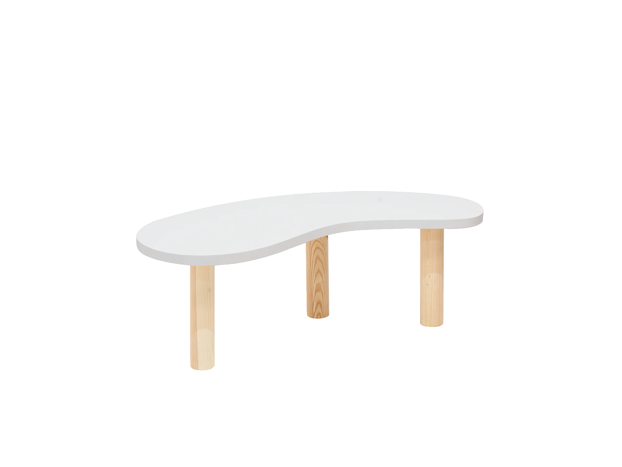 Mesa de centro de madera maciza de forma orgánica Decowood con tres patas en color blanco y sobre de mesa en color natural de 100x40cm - GINA - DECOWOOD
