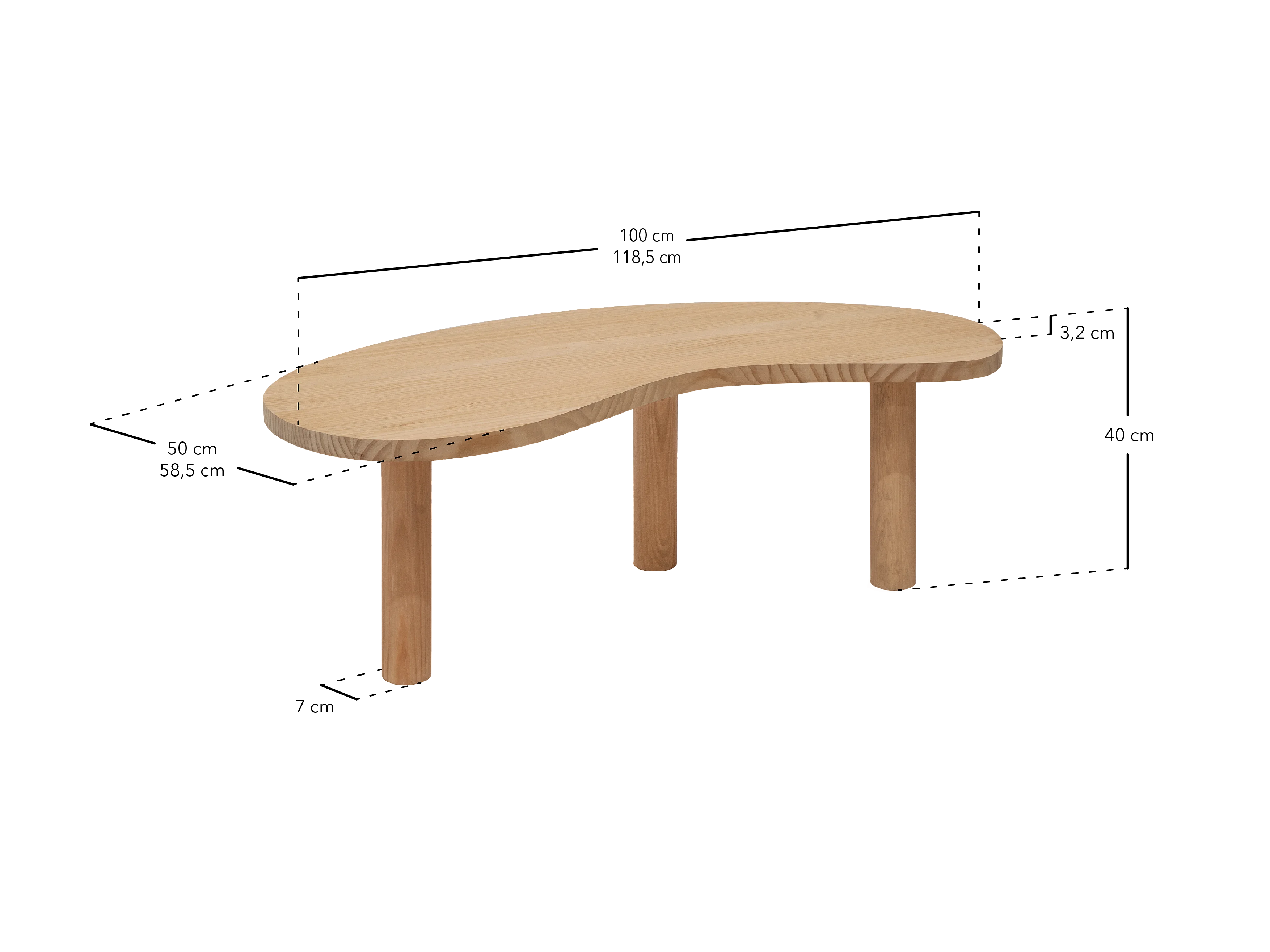 Mesa de centro de madera maciza de forma orgánica Decowood con tres patas en color blanco y sobre de mesa en color roble medio de 100x40cm - GINA - DECOWOOD