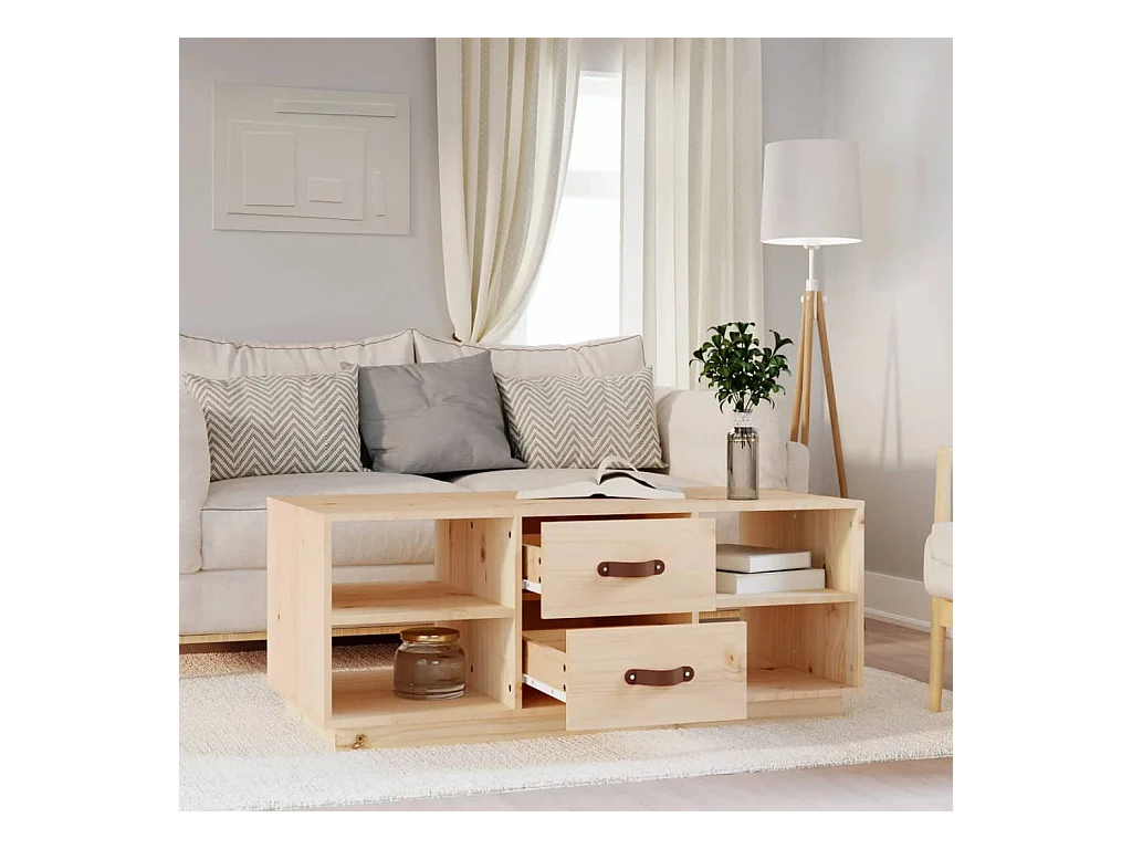 Mesa de centro de madera maciza de pino 100x50x41 cm ES10876