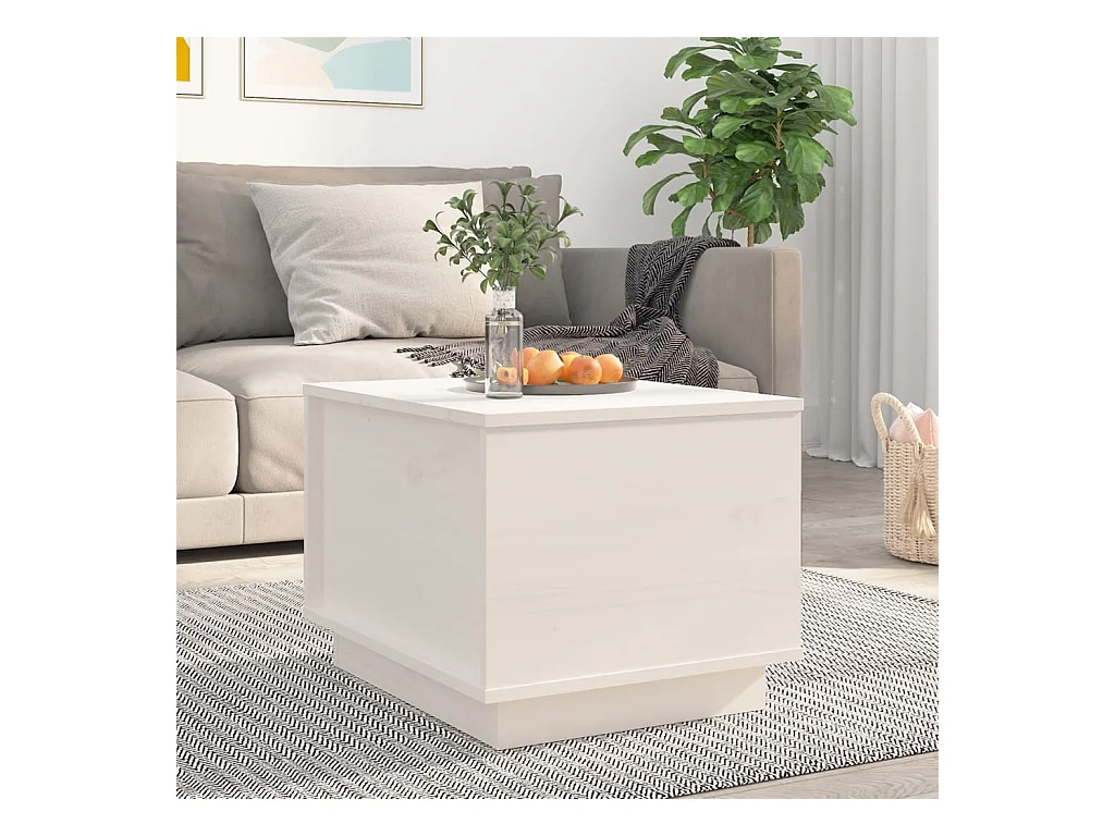 Mesa de centro de madera maciza de pino blanco 60x50x35 cm ES324507