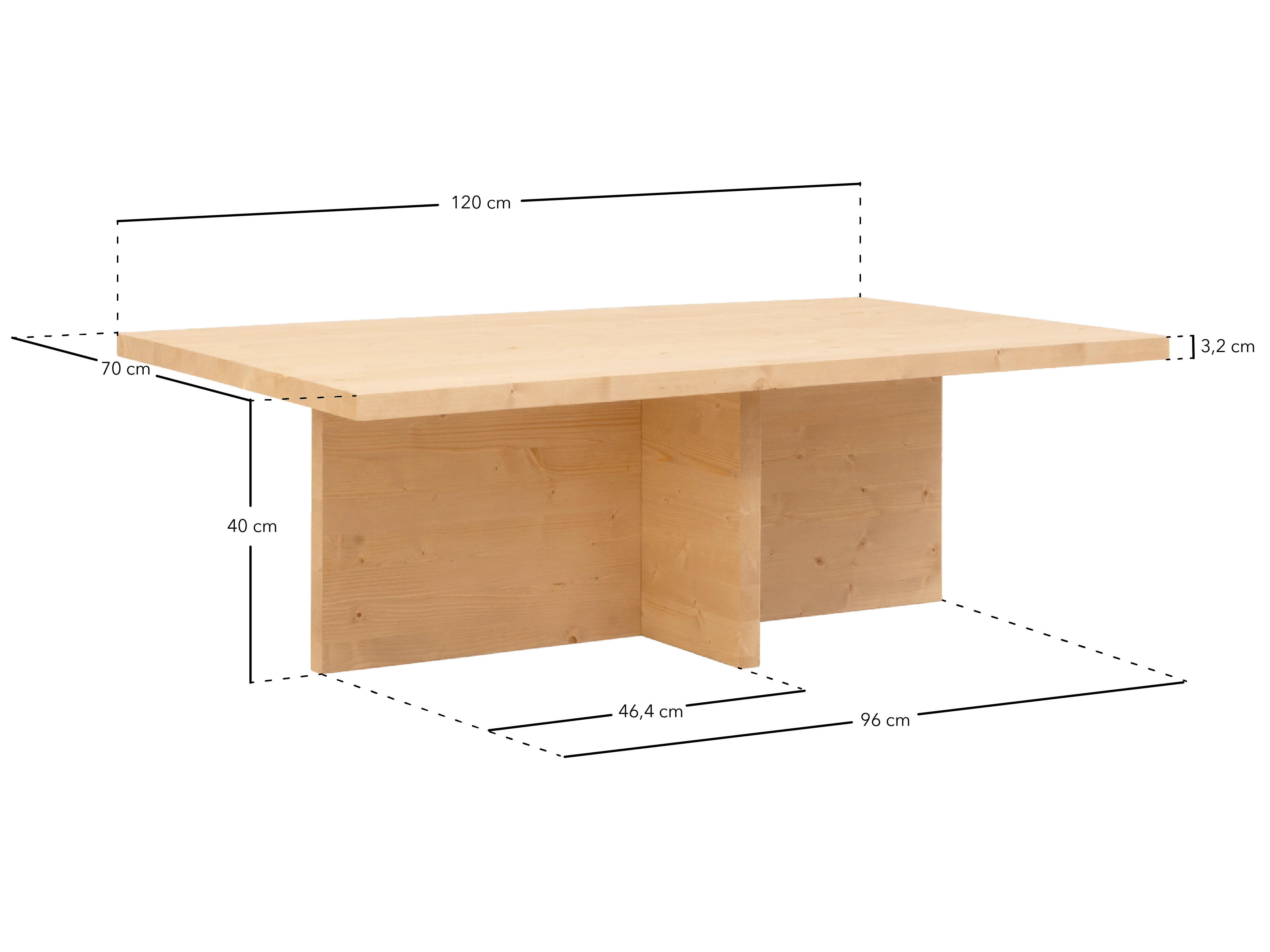 Mesa de centro de madera maciza en tono natural de 120x40cm - TENA - DECOWOOD