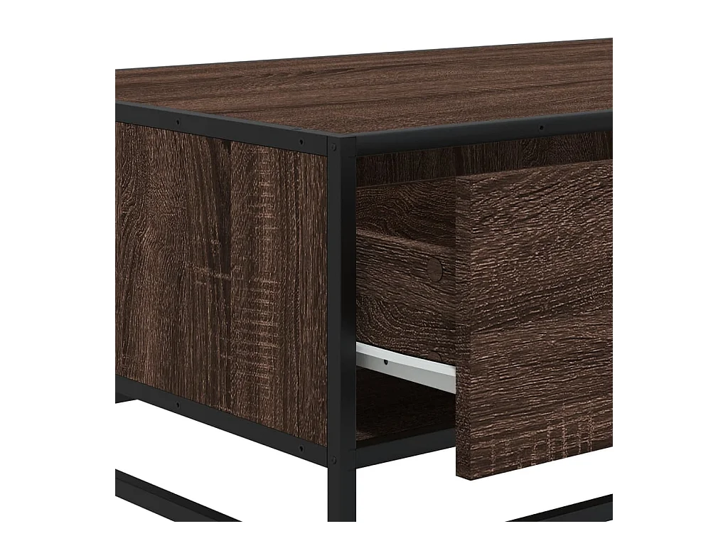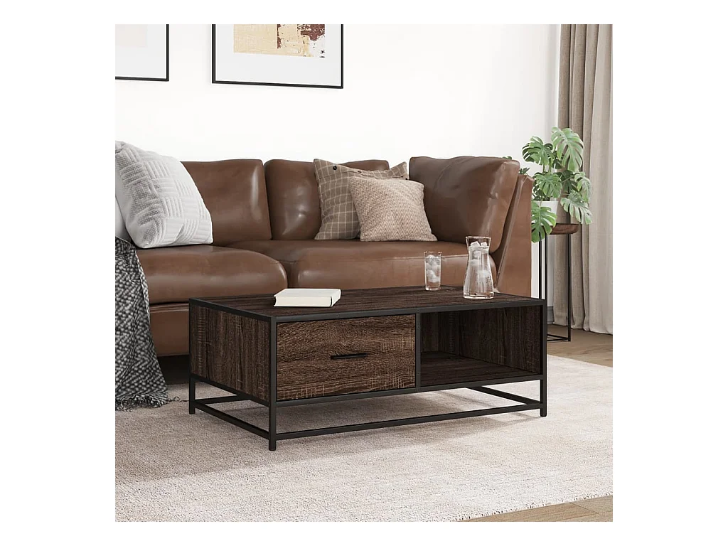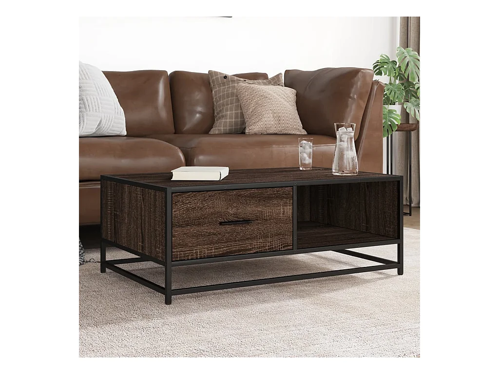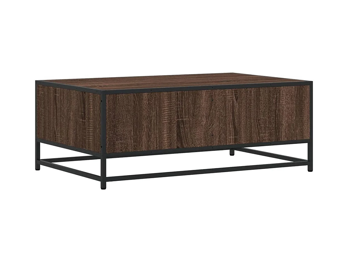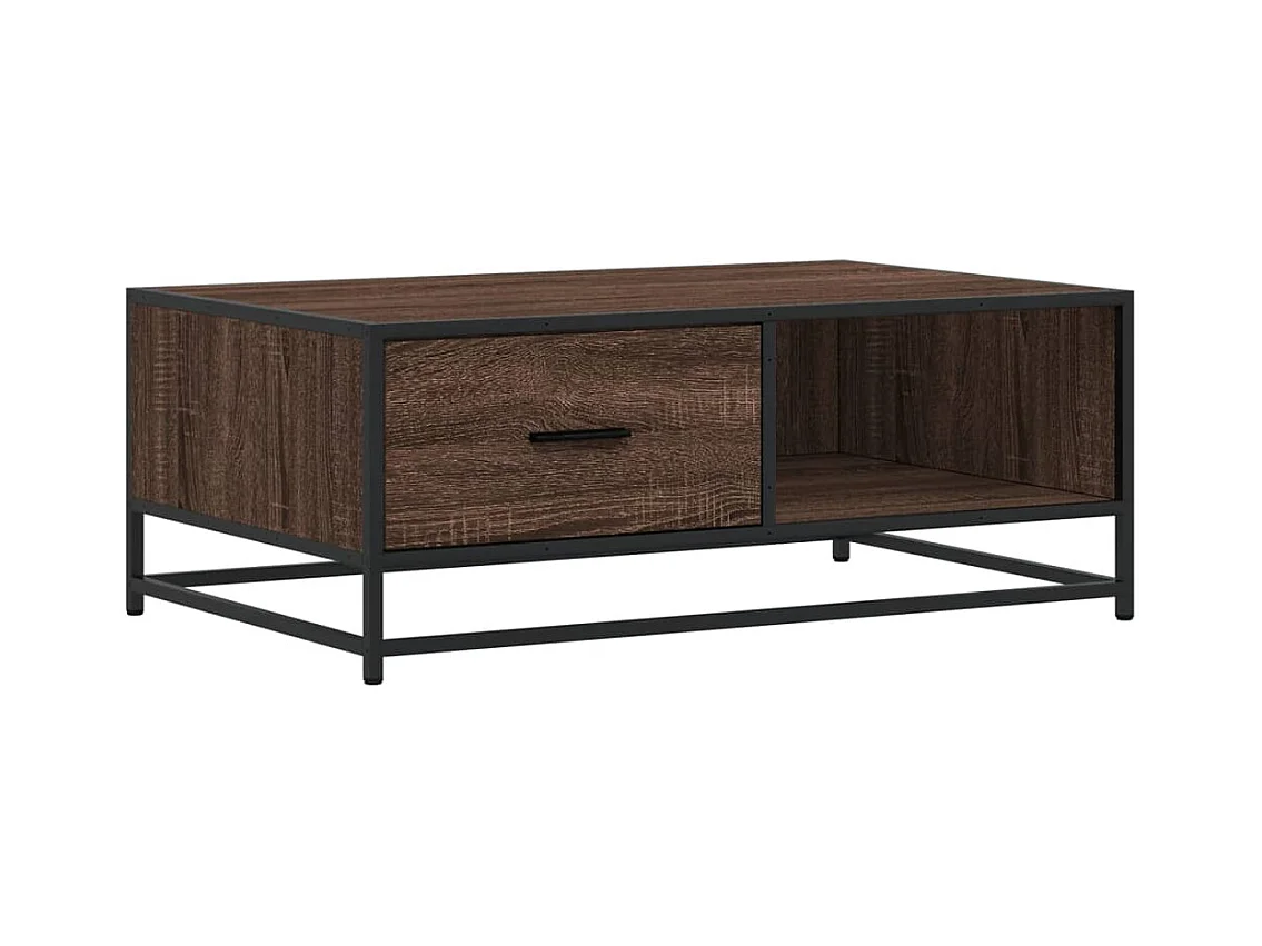 Mesa de centro de roble marrón 90x57x35 cm de madera contrachapada y metal
