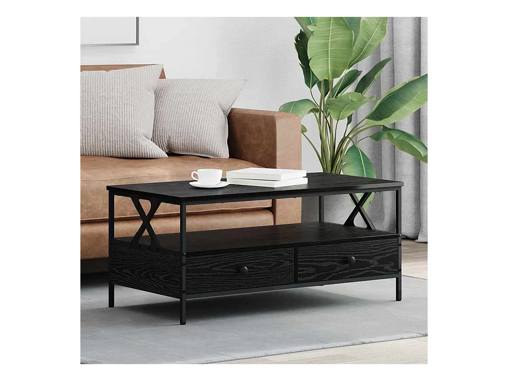 Mesa de centro madera de ingeniería y metal negro 100x50x45 cm ES925094
