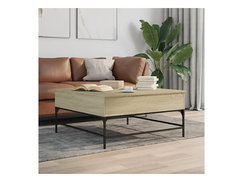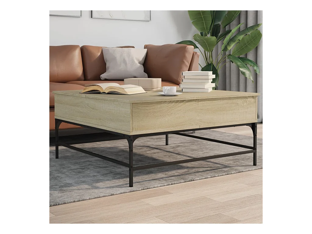 Mesa de centro madera ingeniería metal roble Sonoma 95x95x45 cm ES226716
