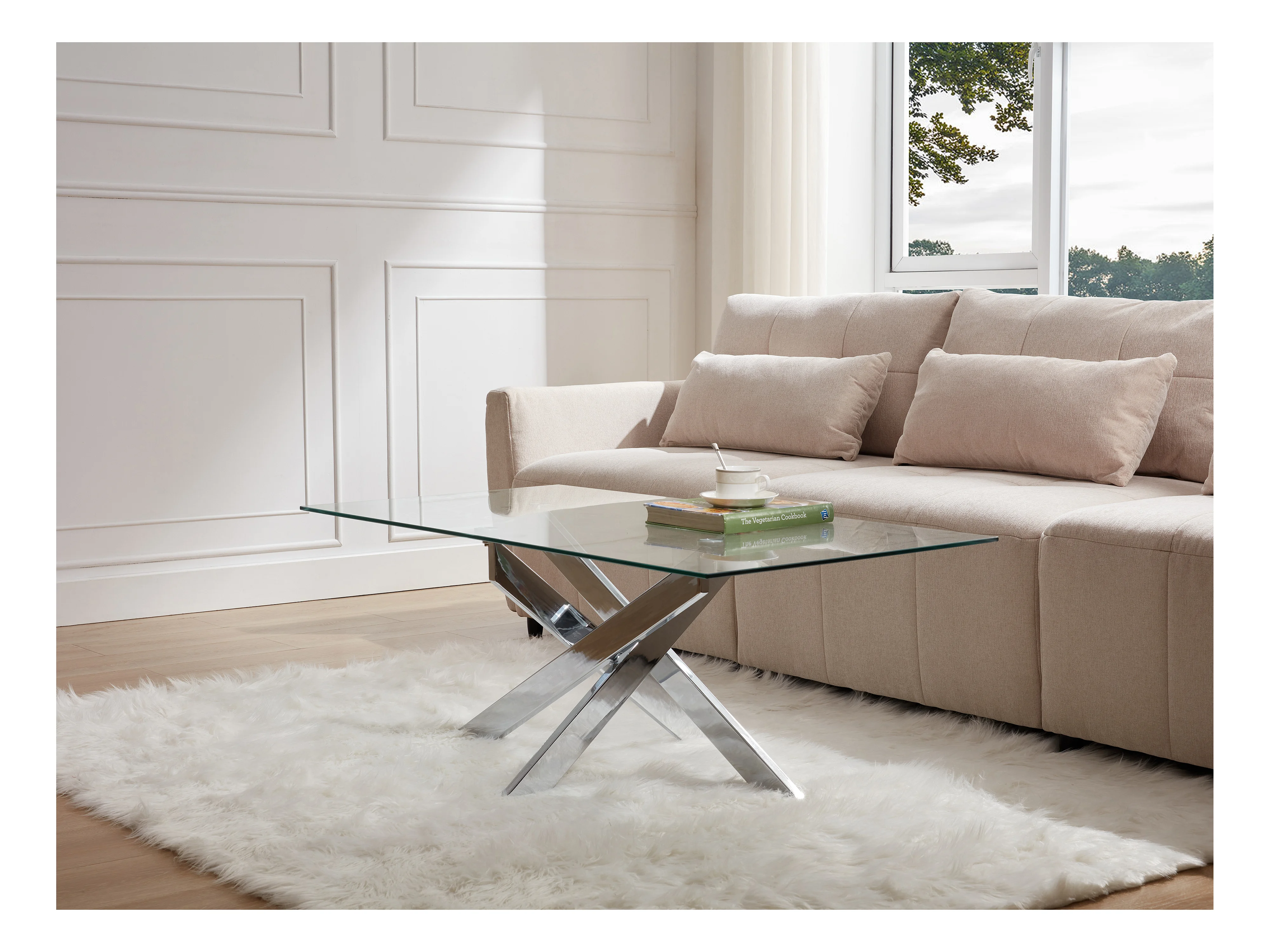 Mesa de centro de vidrio templado y metal cromado - Transparente - COSIMA