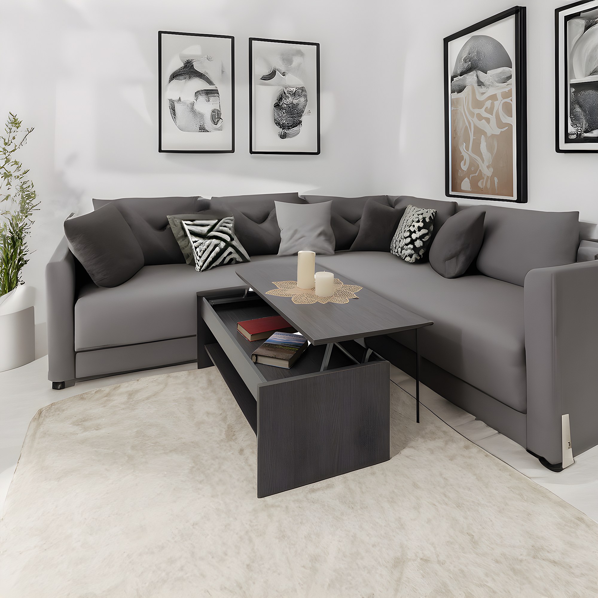 Mesa de Centro Elevable 100x50x44 a 57cm acabado color ceniza