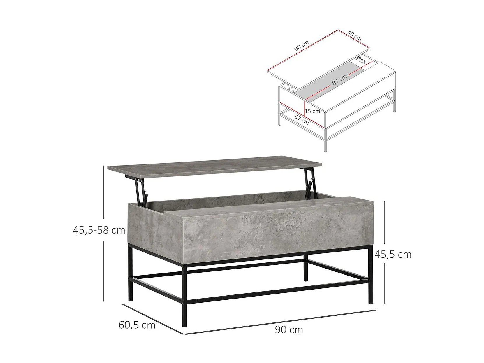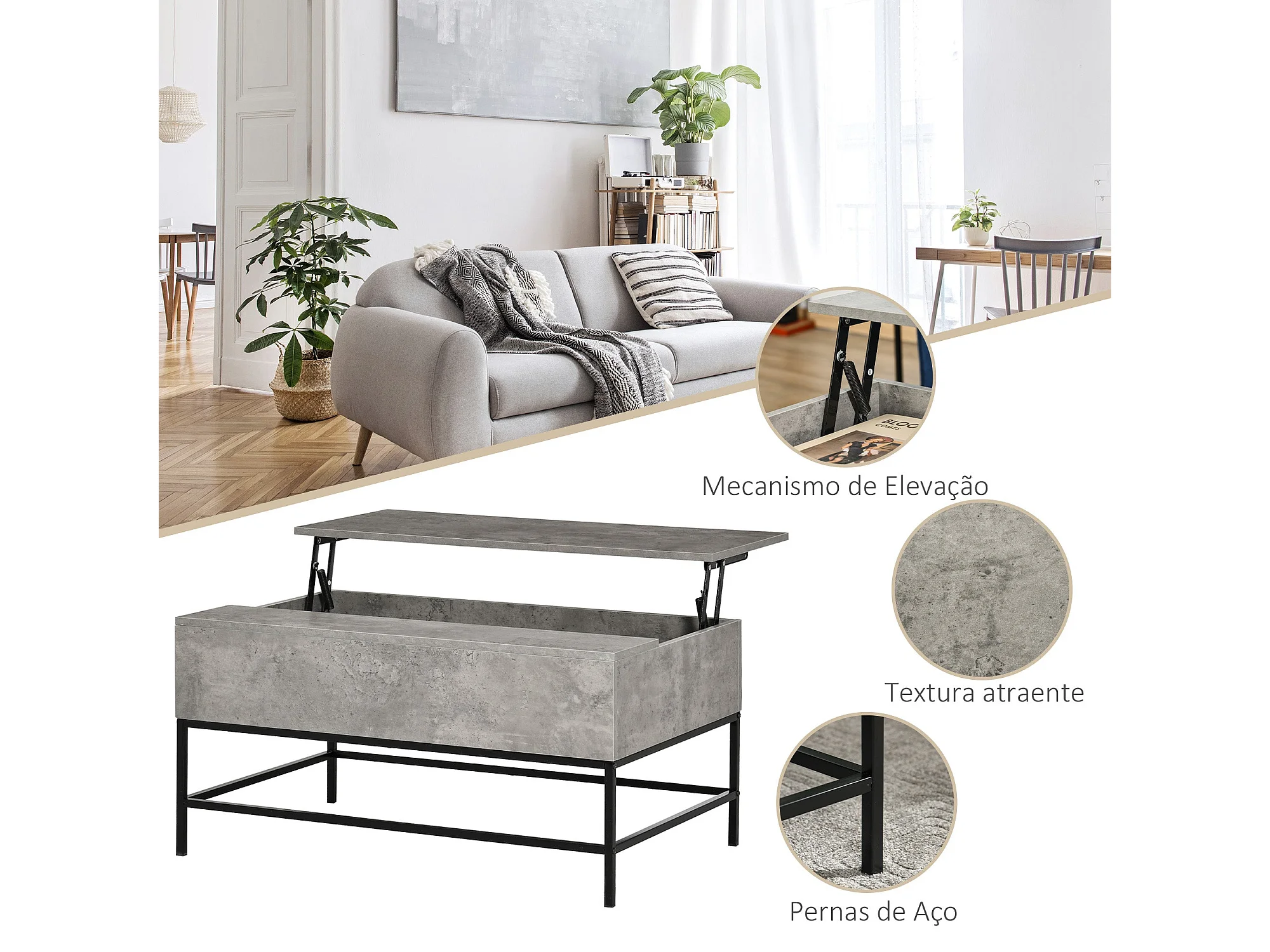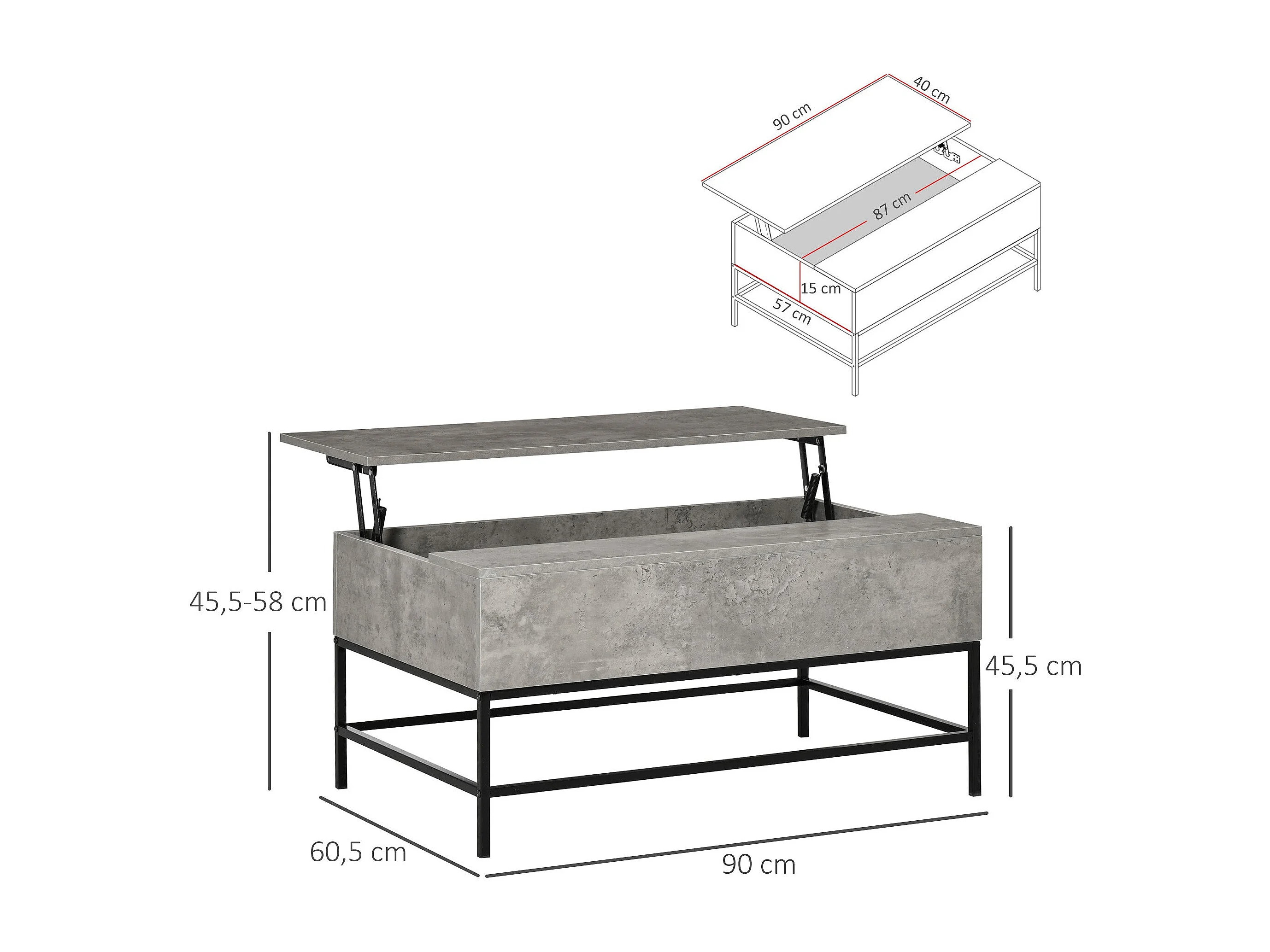 Mesa de centro elevable Arca Homcom con compartimento interior gris 45,5x90x60,5 cm