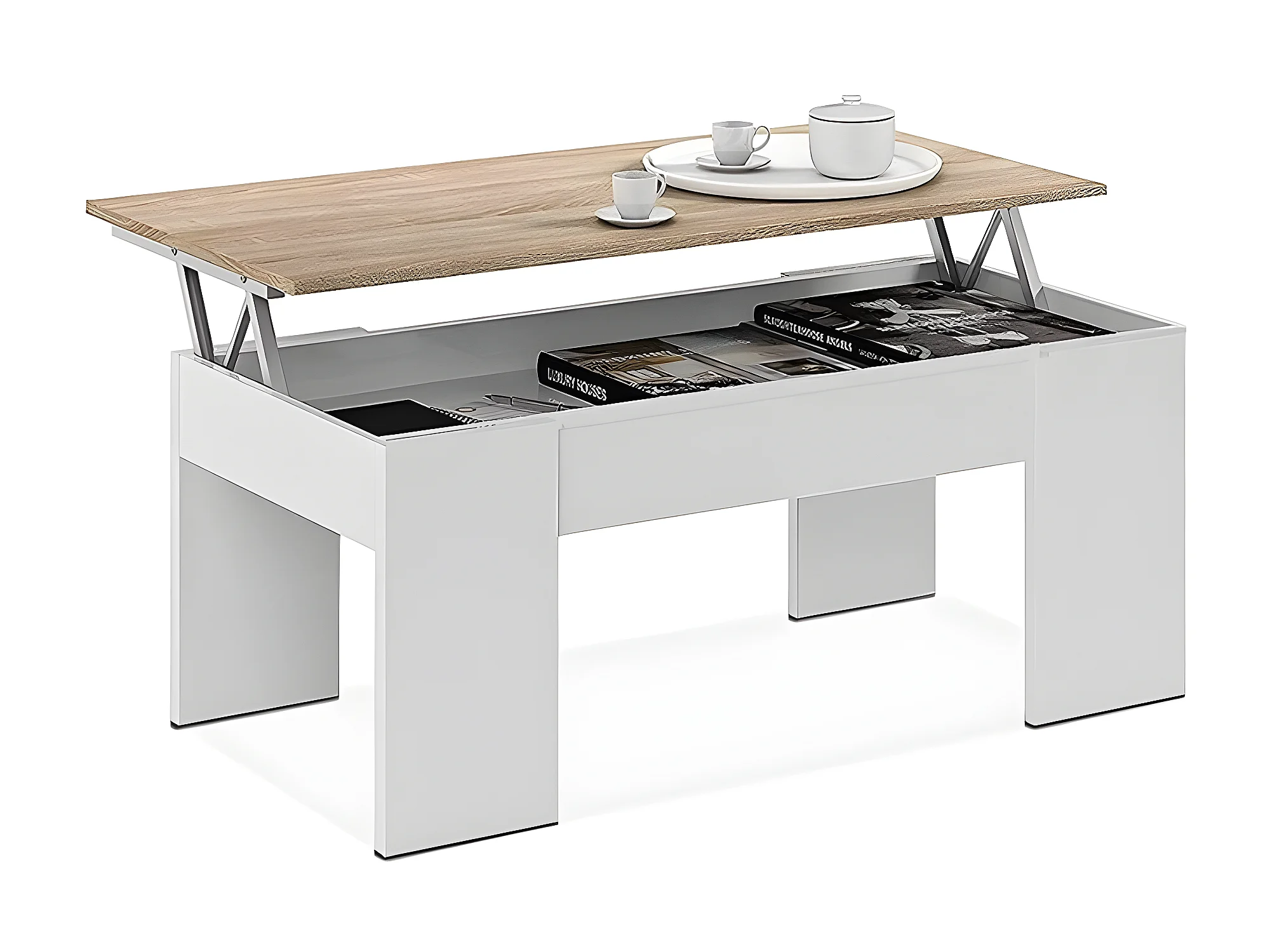 Mesa de Centro Elevable Elise, Blanco y Cambria 90x50 cm