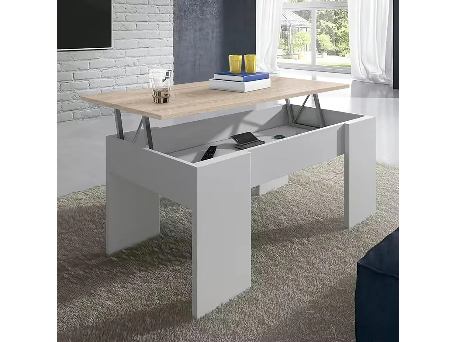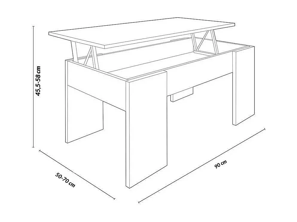 Mesa de centro elevable GALA 90x50x46 cm - BLANCO-CAMBRIAN