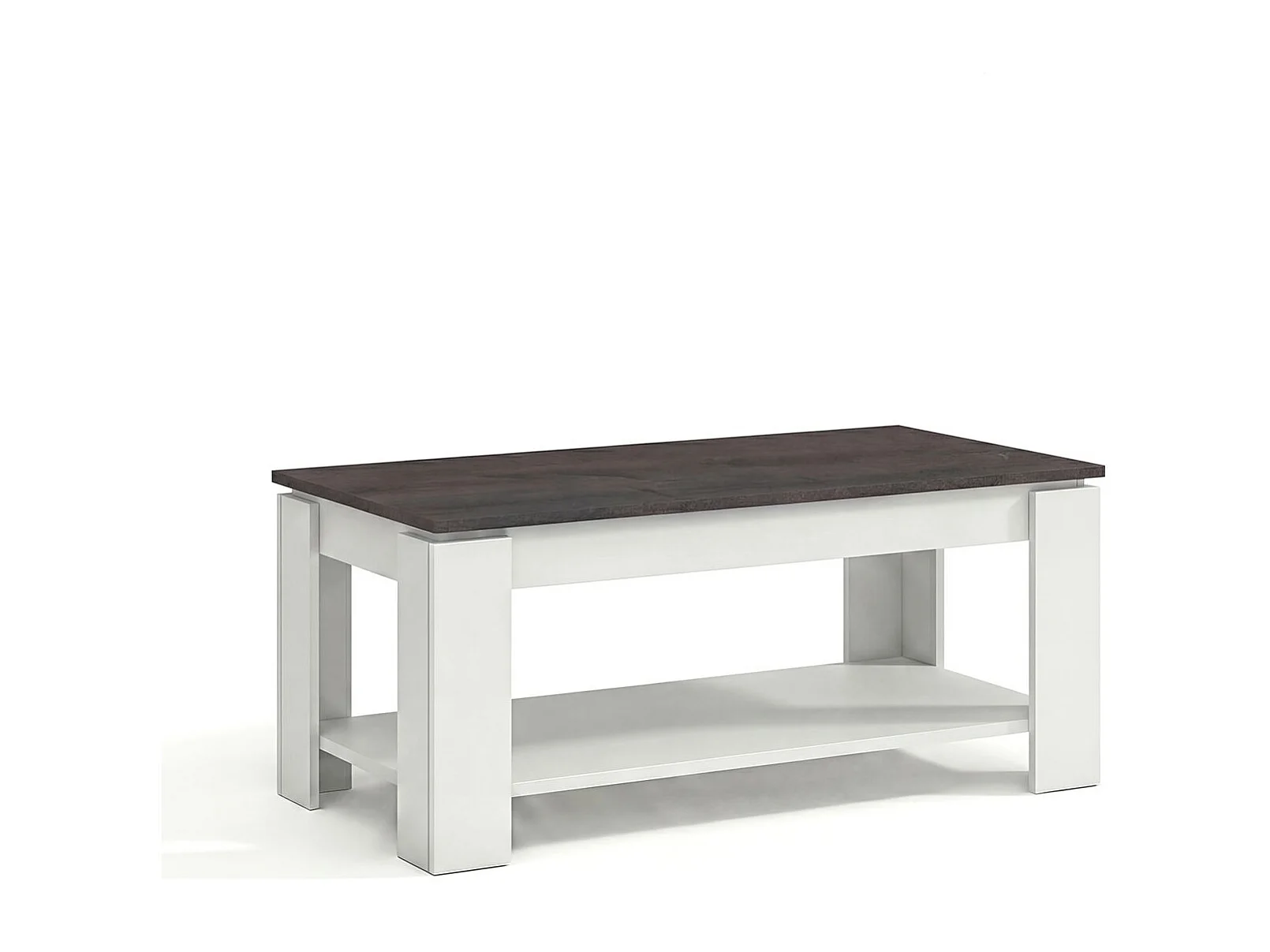 Mesa de centro elevable con almacenaje en blanco mate y óxido 102x43-54 cm Lya Blanco Artik (Blanco Mate) - Óxido