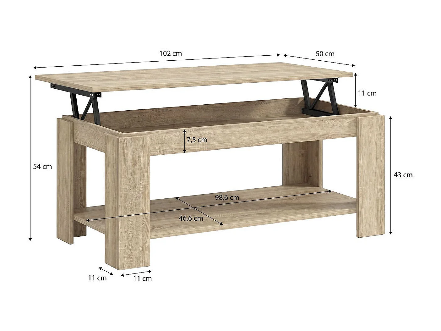 Mesa de centro elevable con almacenaje en roble canadian 102x43-54 cm Lya Roble Canadian
