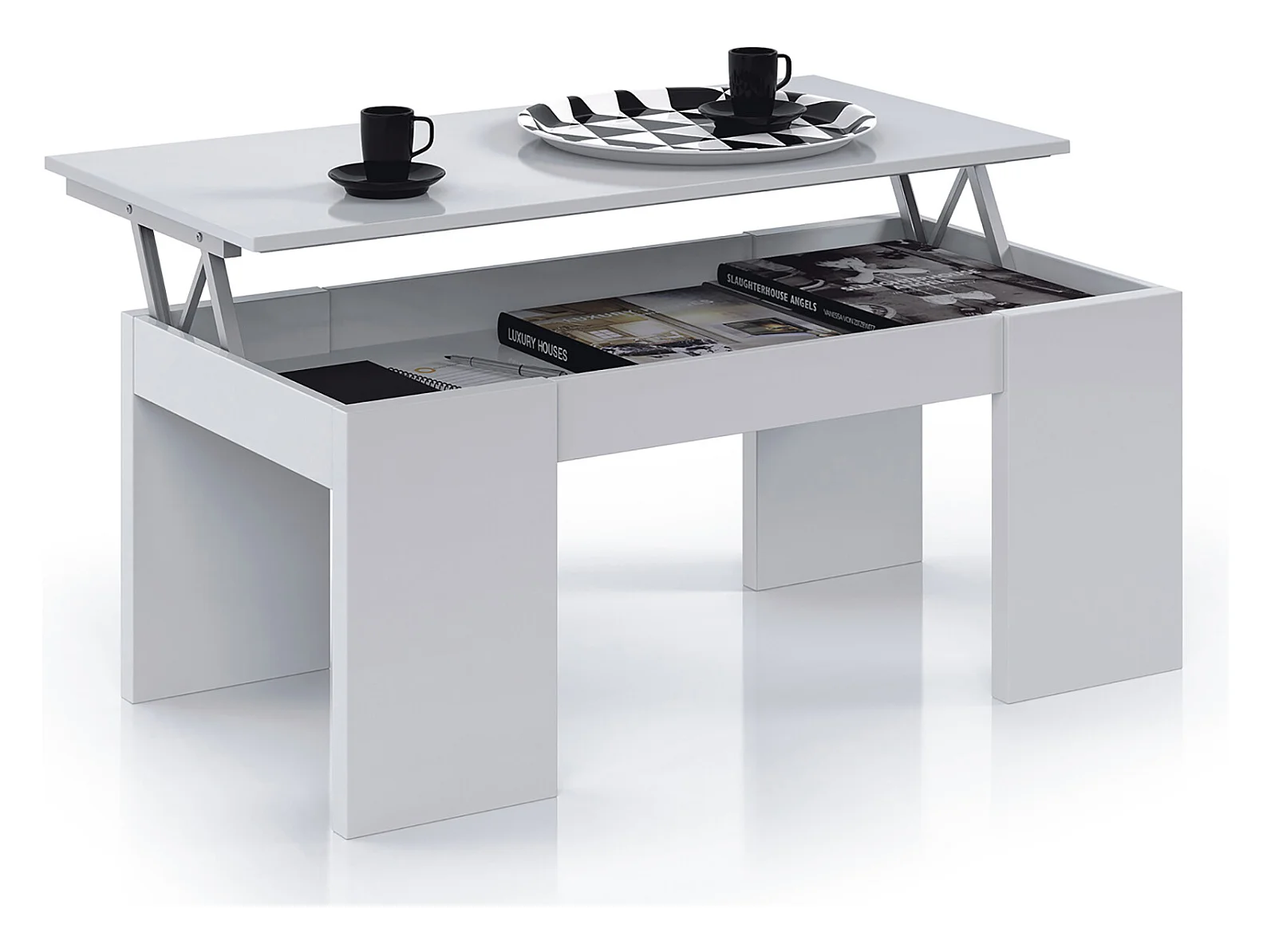 Mesa de centro HAPPY contemporánea blanca con almacenamiento y altura ajustable - L 100 x A 50 cm