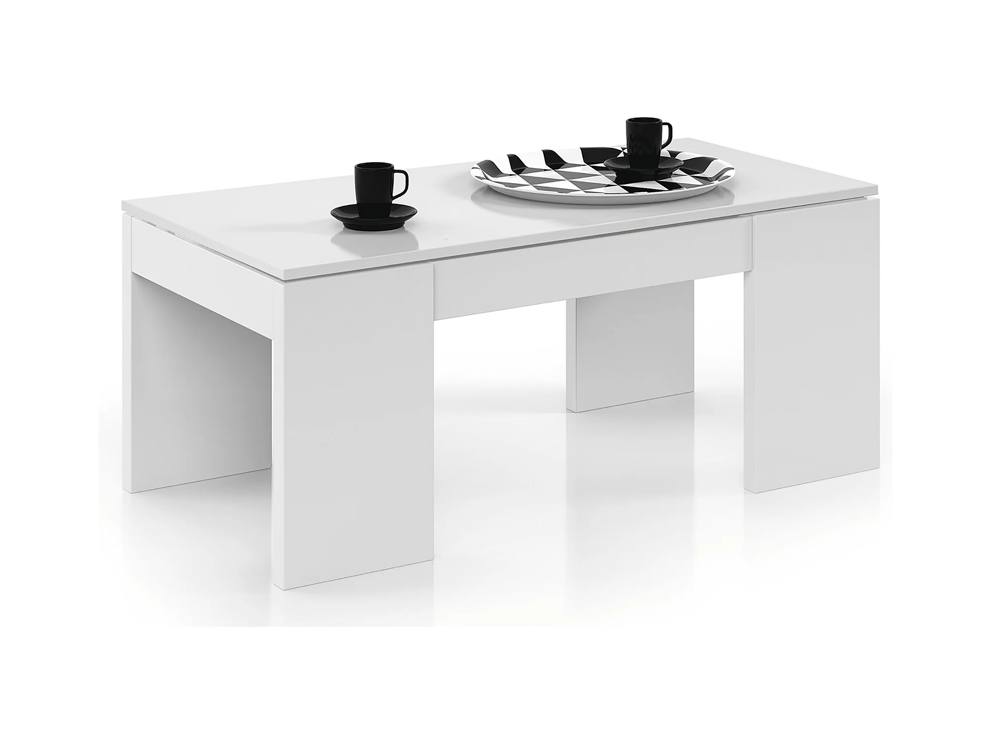 Mesa de Centro Elevable para Salón o Comedor con Acabado en Blanco Brillo - Dim: 100 x 50 x 43-54 cm