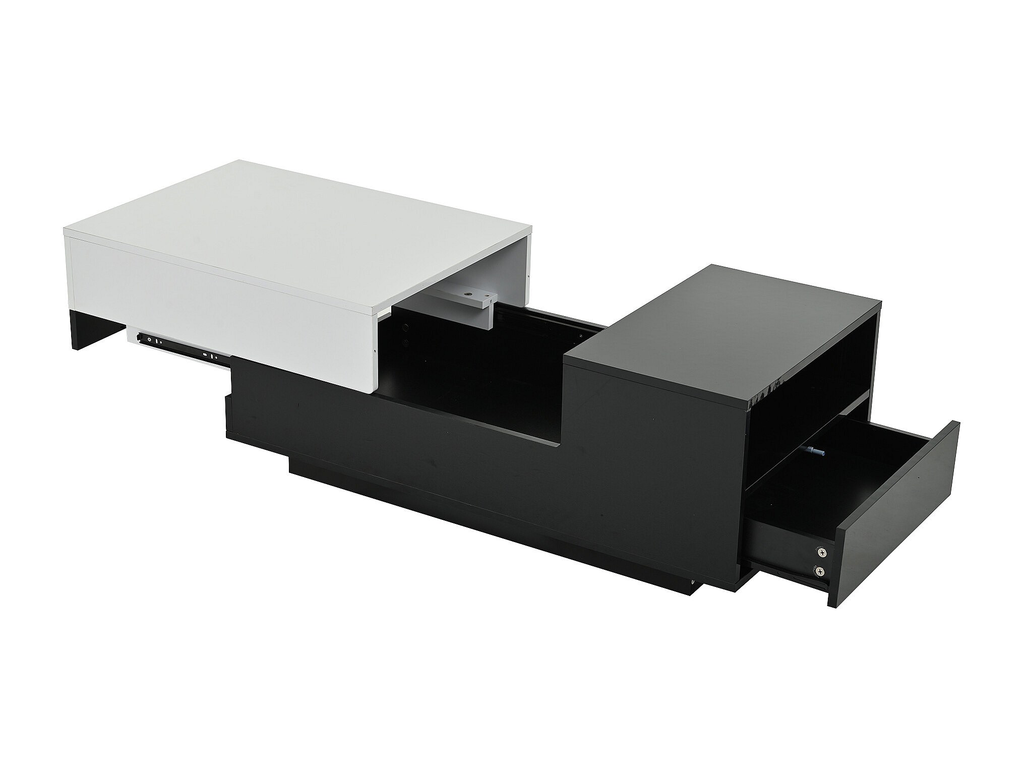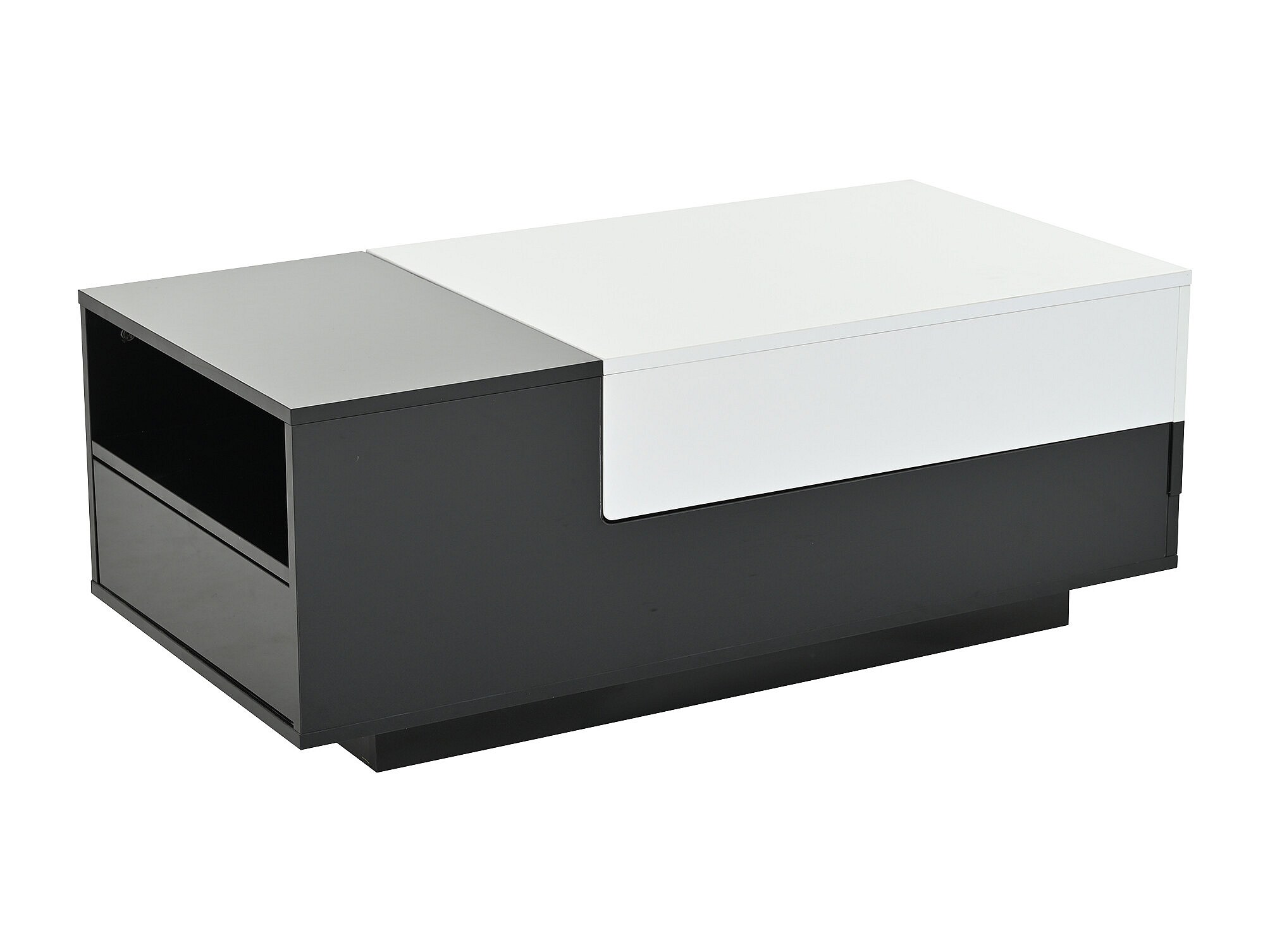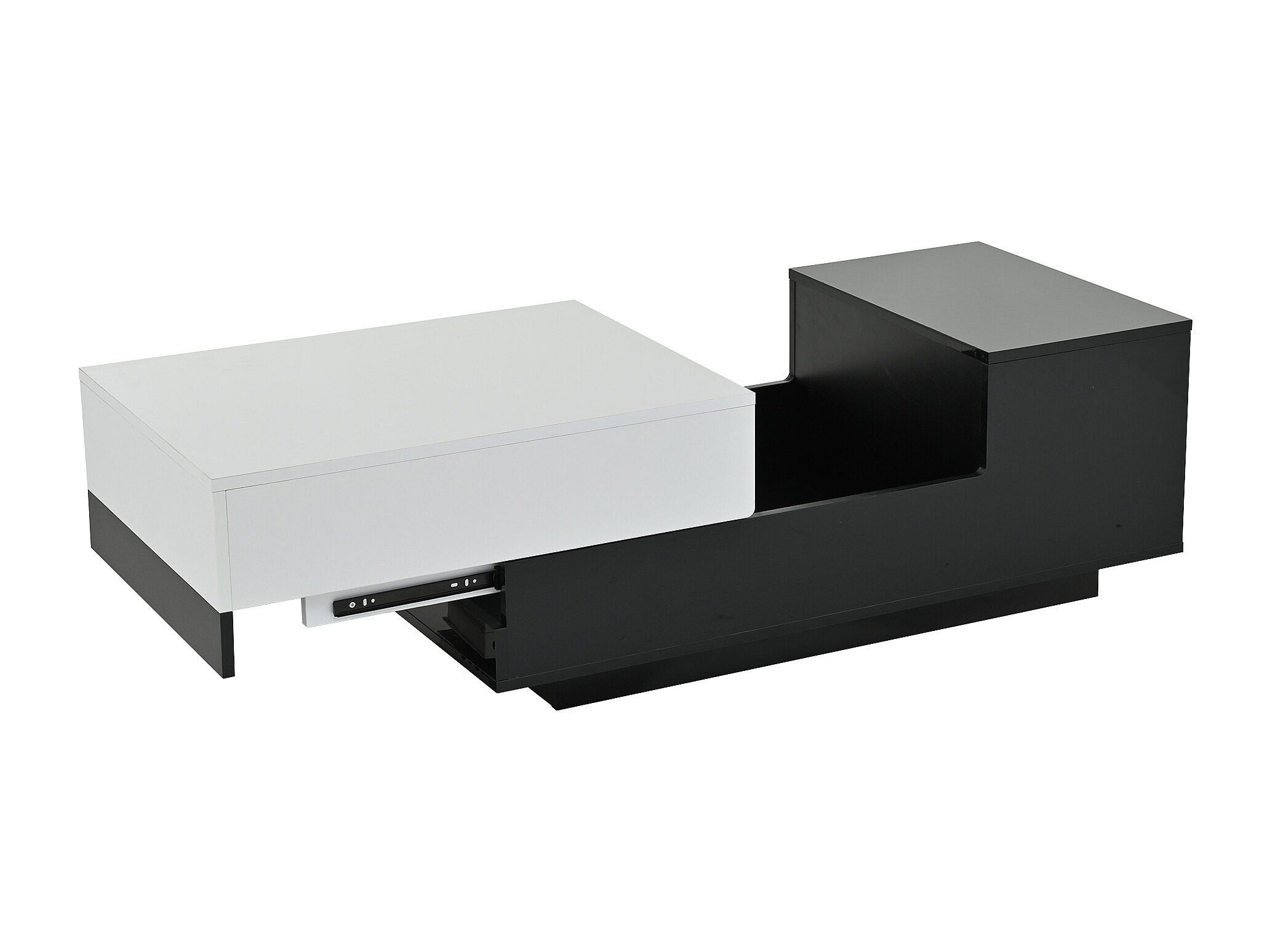 Mesa de centro en blanco y negro - Mesa de centro con tapa deslizante y 1 cajón - compartimento de almacenamiento oculto