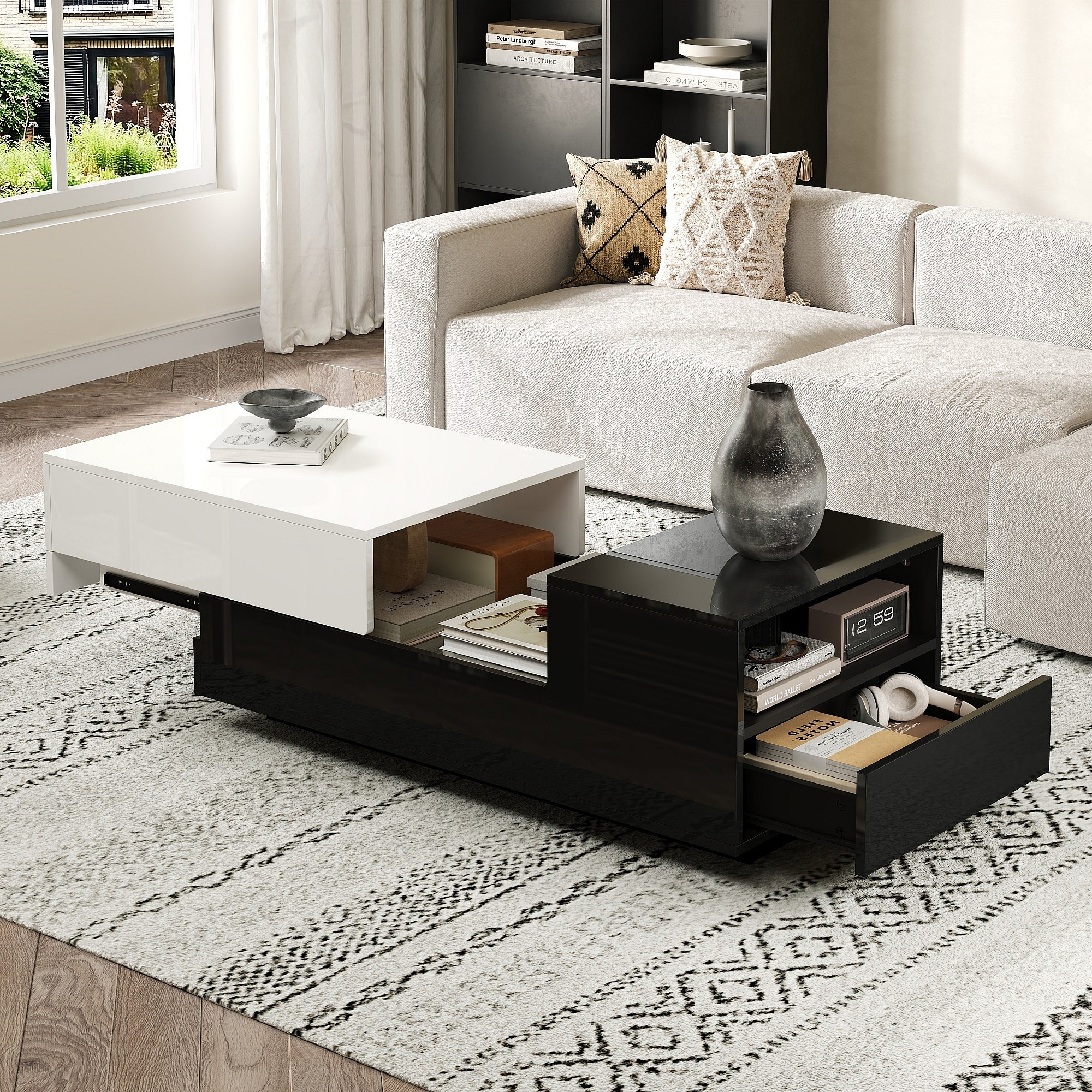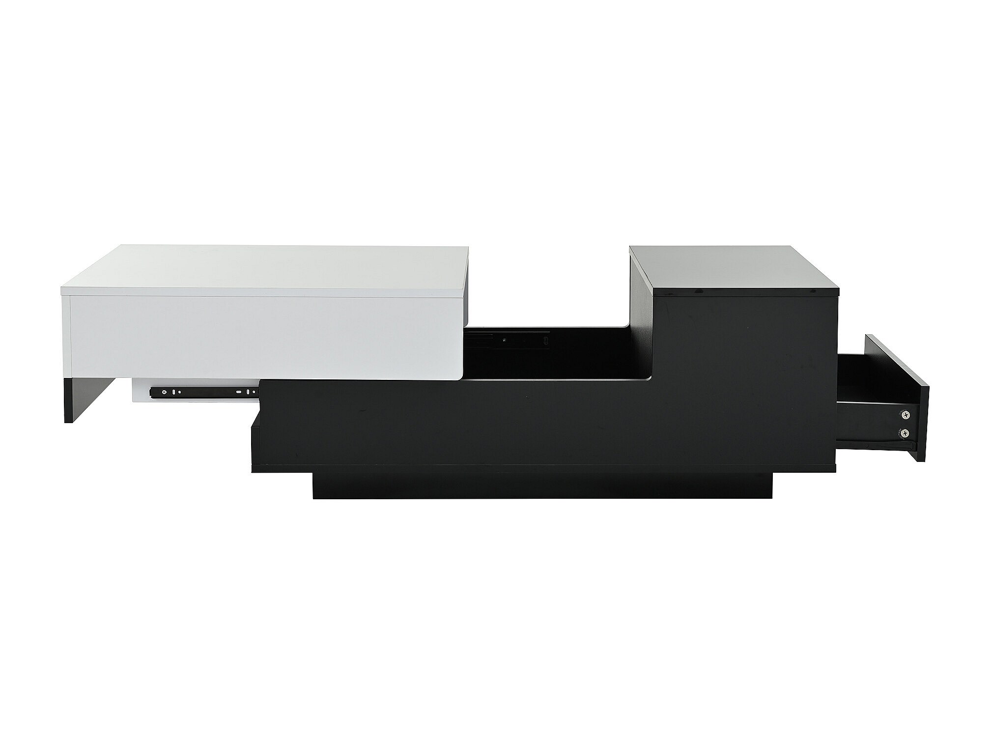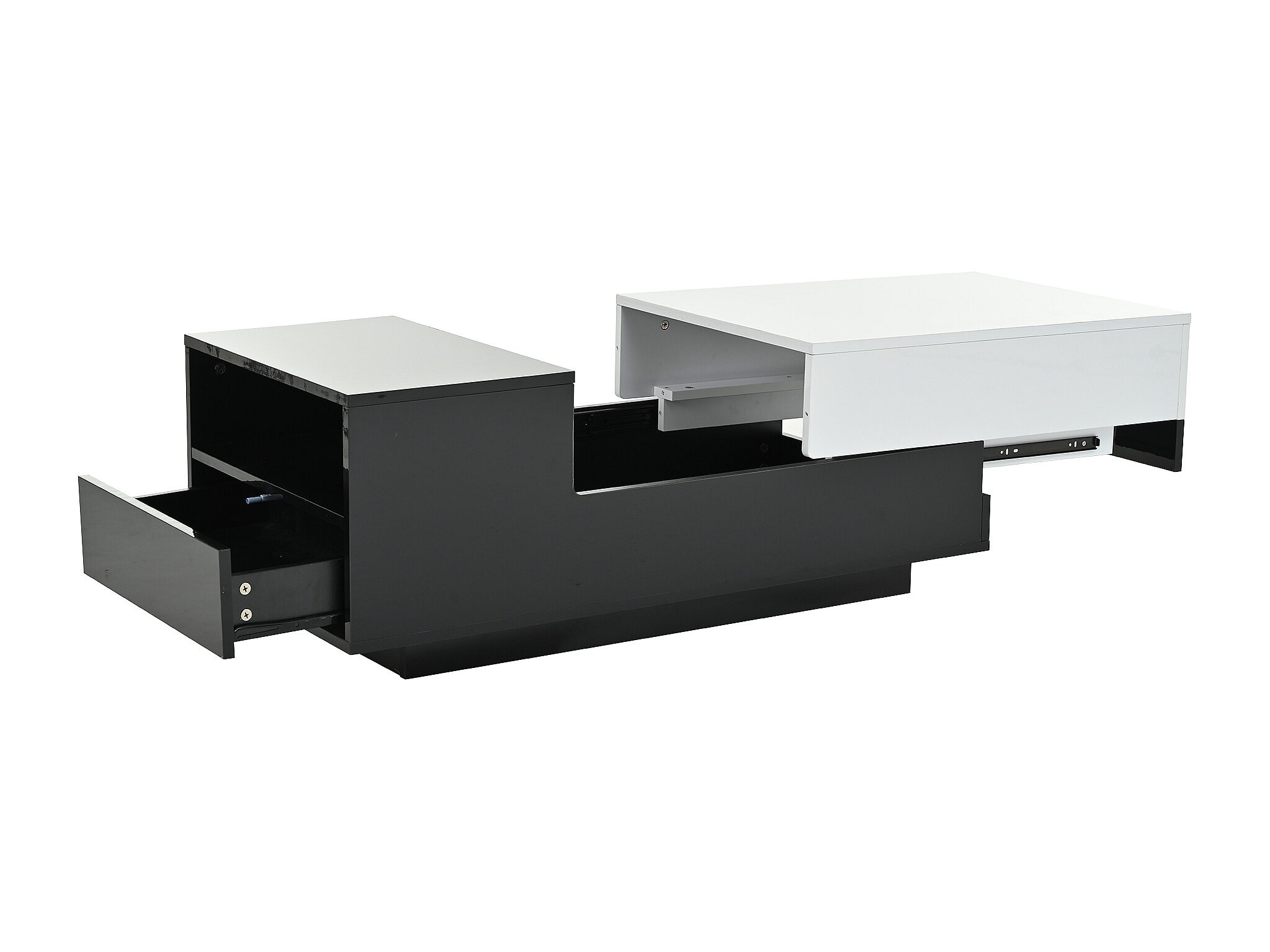 Mesa de centro en blanco y negro - Mesa de centro con tapa deslizante y 1 cajón - compartimento de almacenamiento oculto