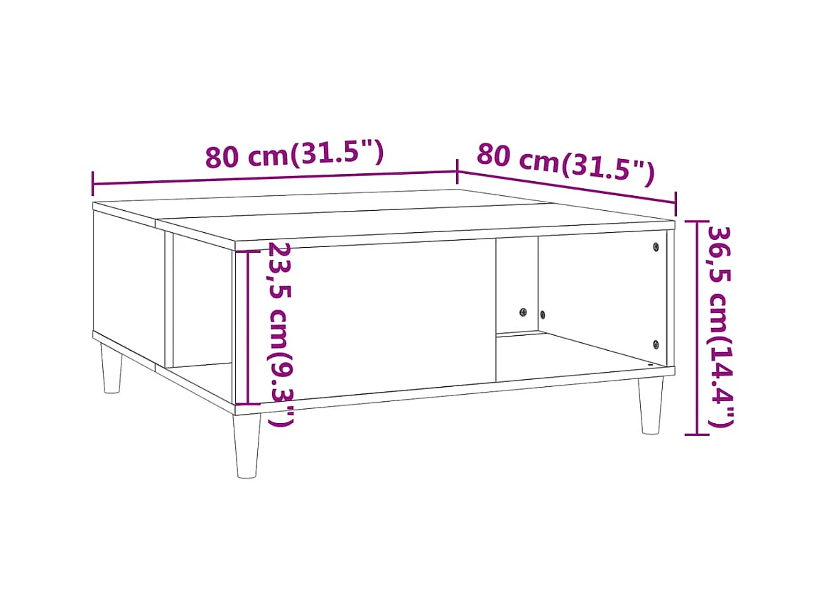 Mesa de centro Gold negra 80x80x36,5 cm de madera contrachapada