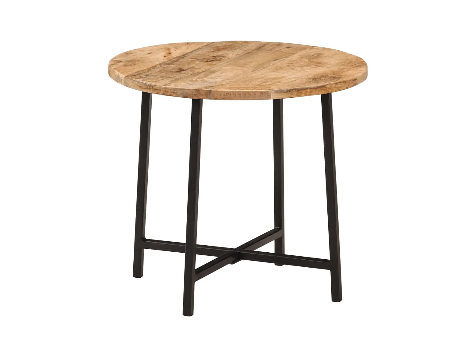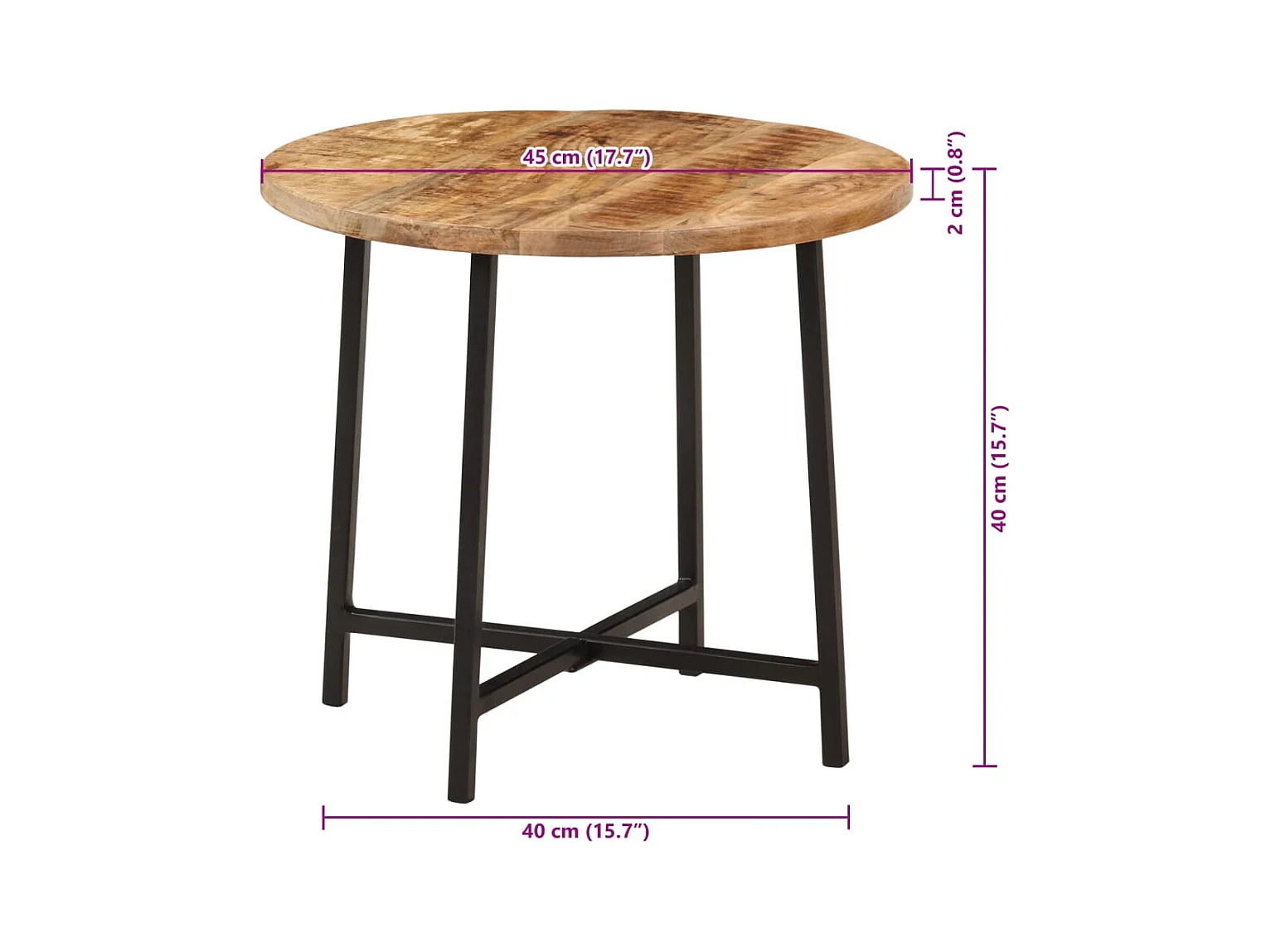 Mesa de centro hierro y madera maciza de mango 45x45x40 cm
