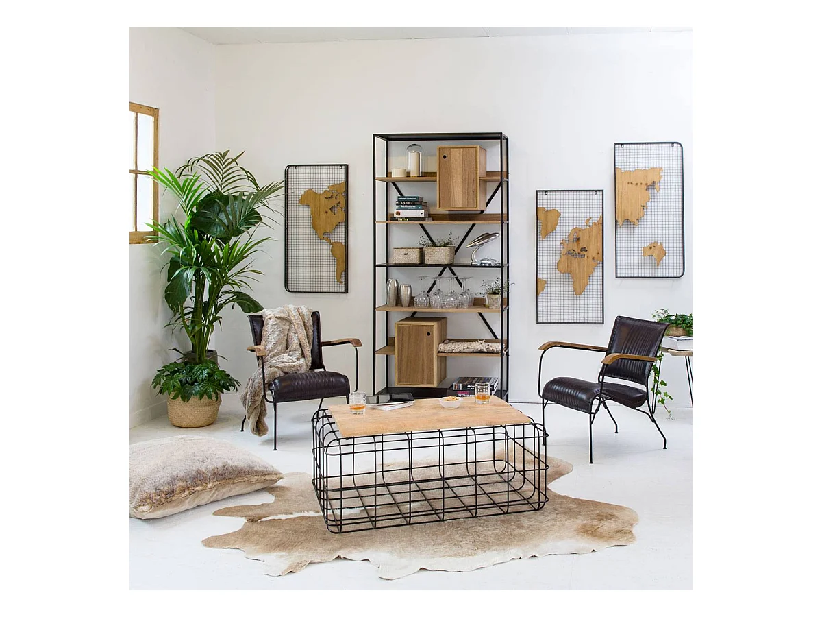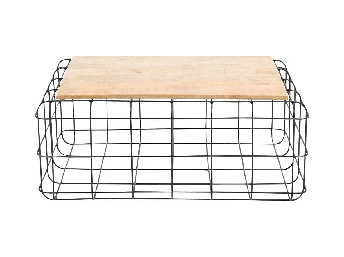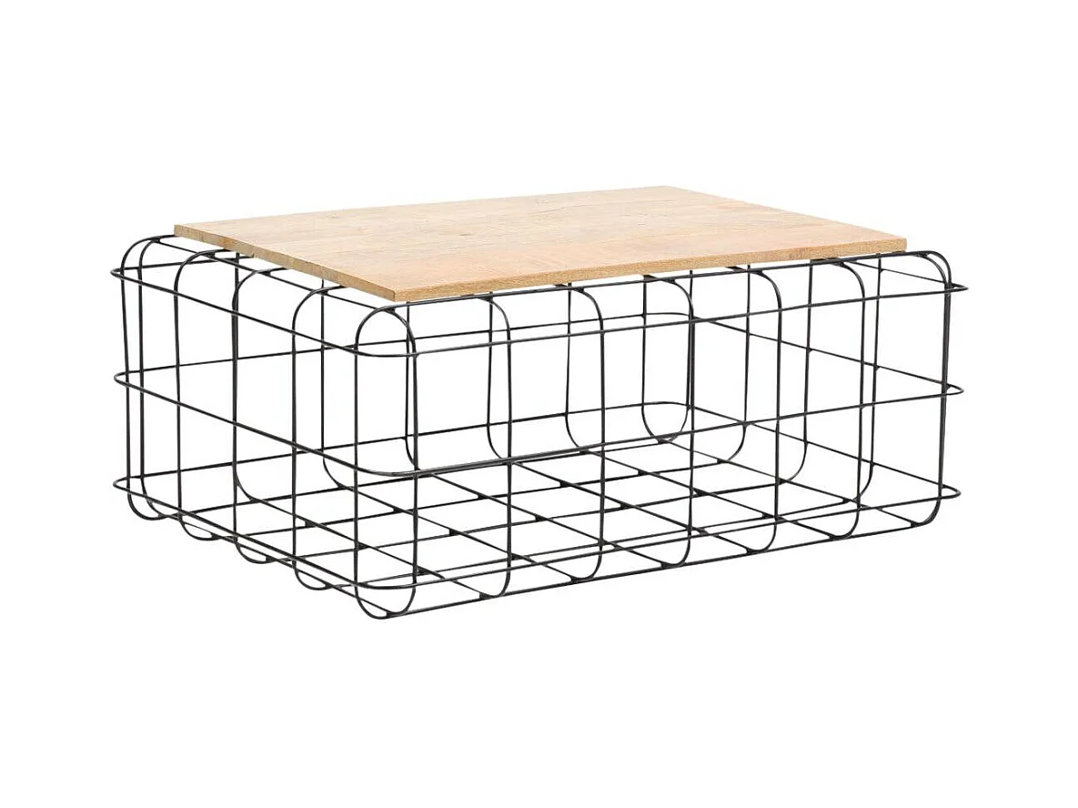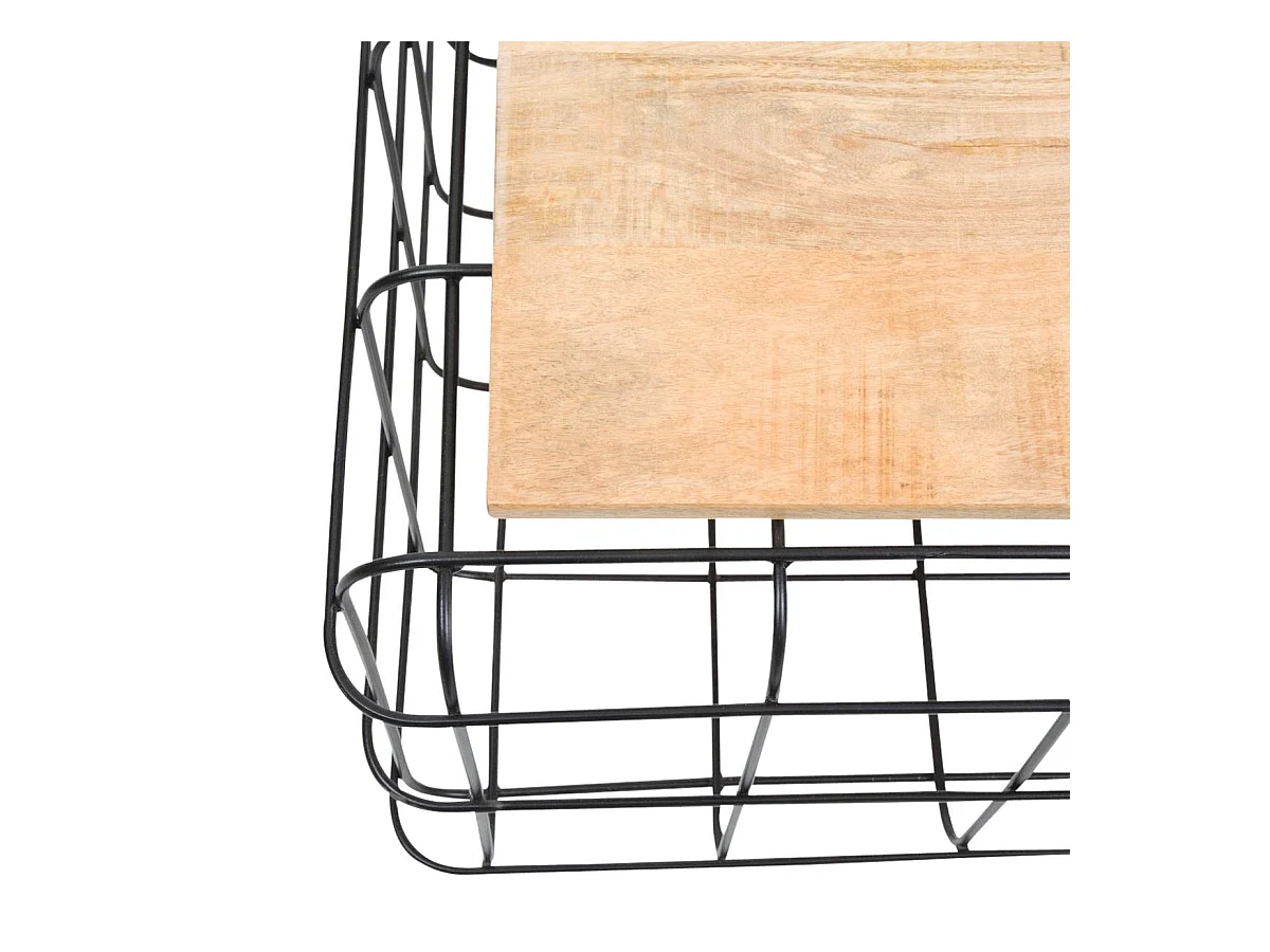 Mesa de centro industrial de madera de mango y metal negro con almacenamiento