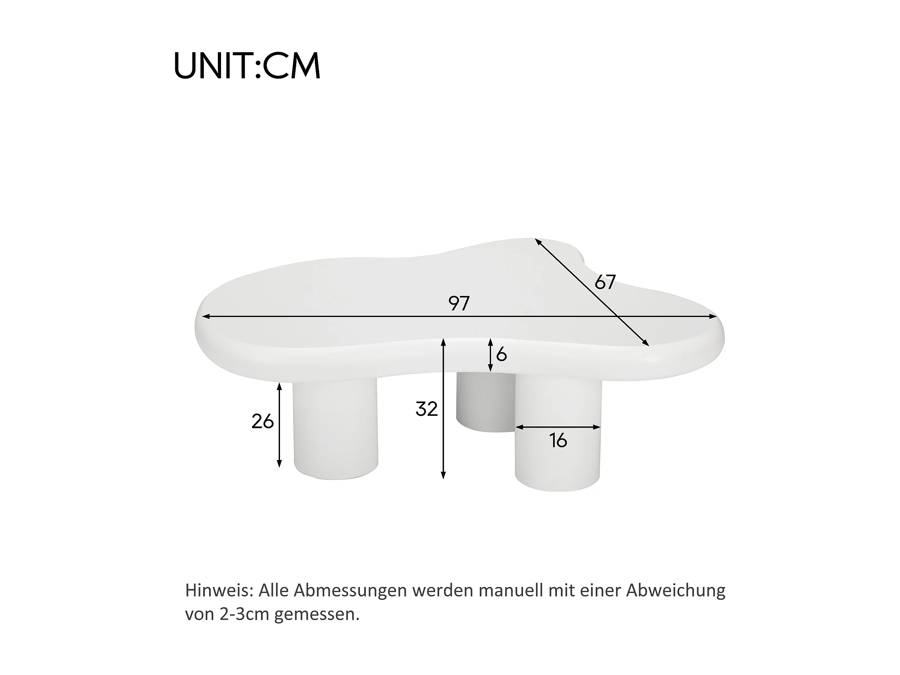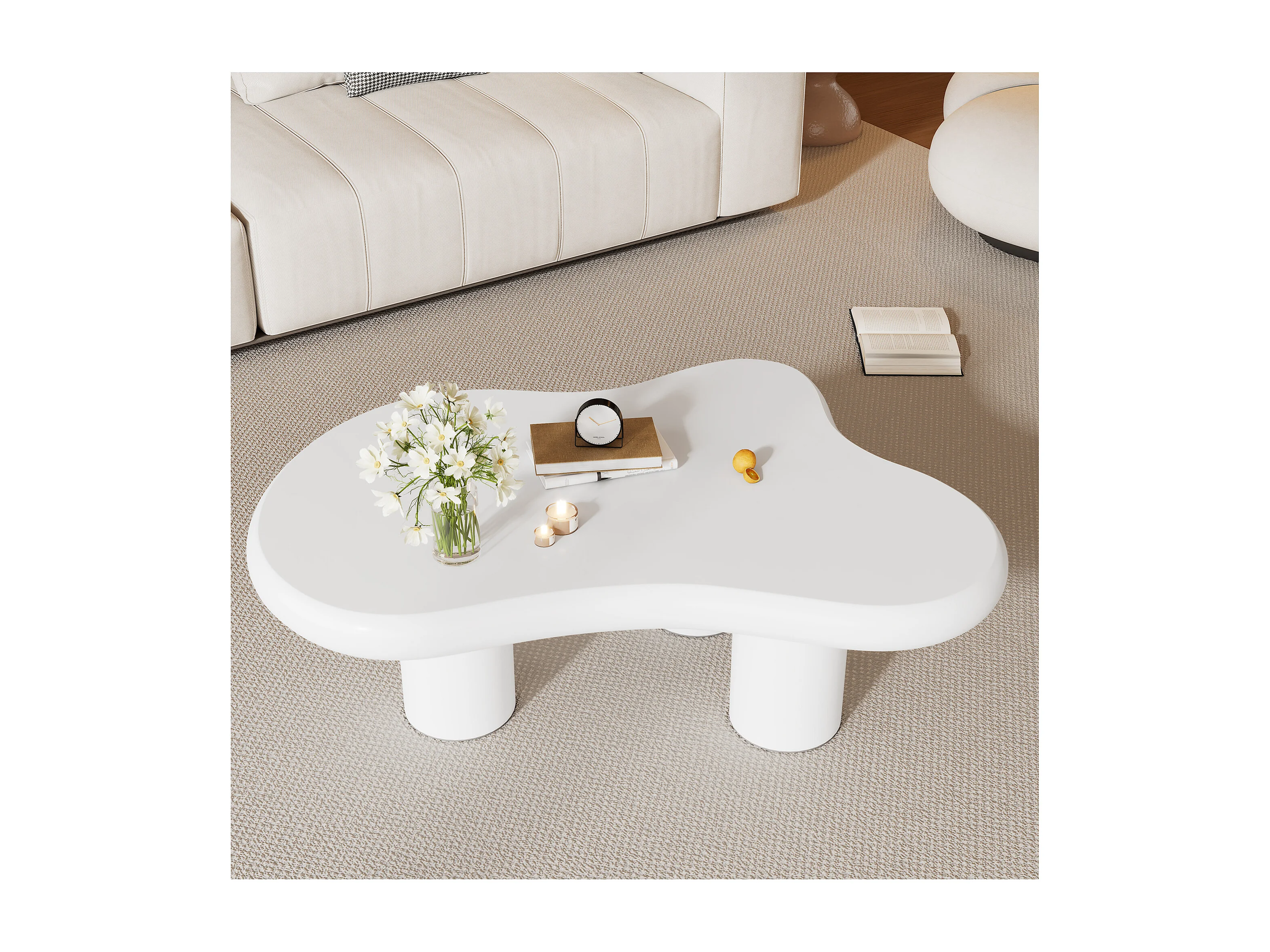 Mesa de centro irregular en forma de nube blanca - Madera MDF 97X67X32cm