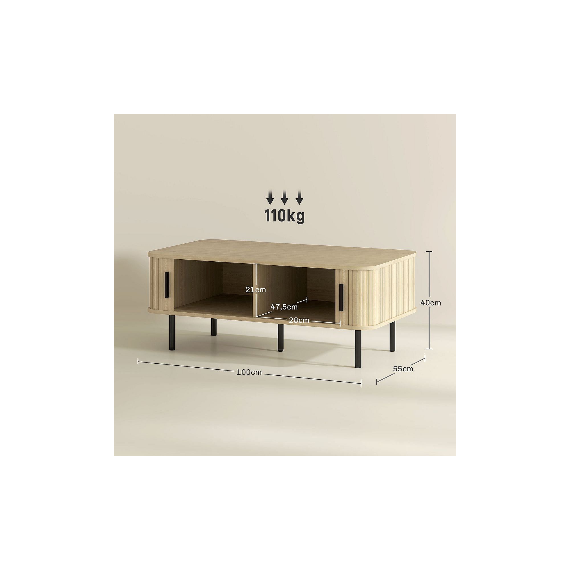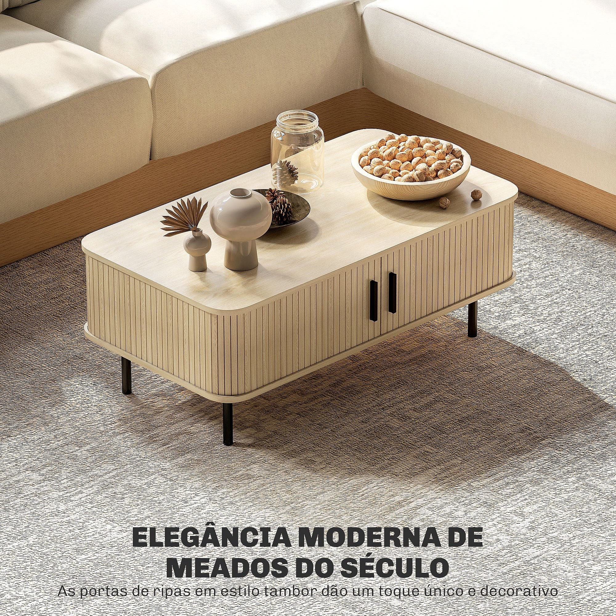 Mesa de centro Lágrima Homcom 2 puertas de persiana roble 40x100x55 cm