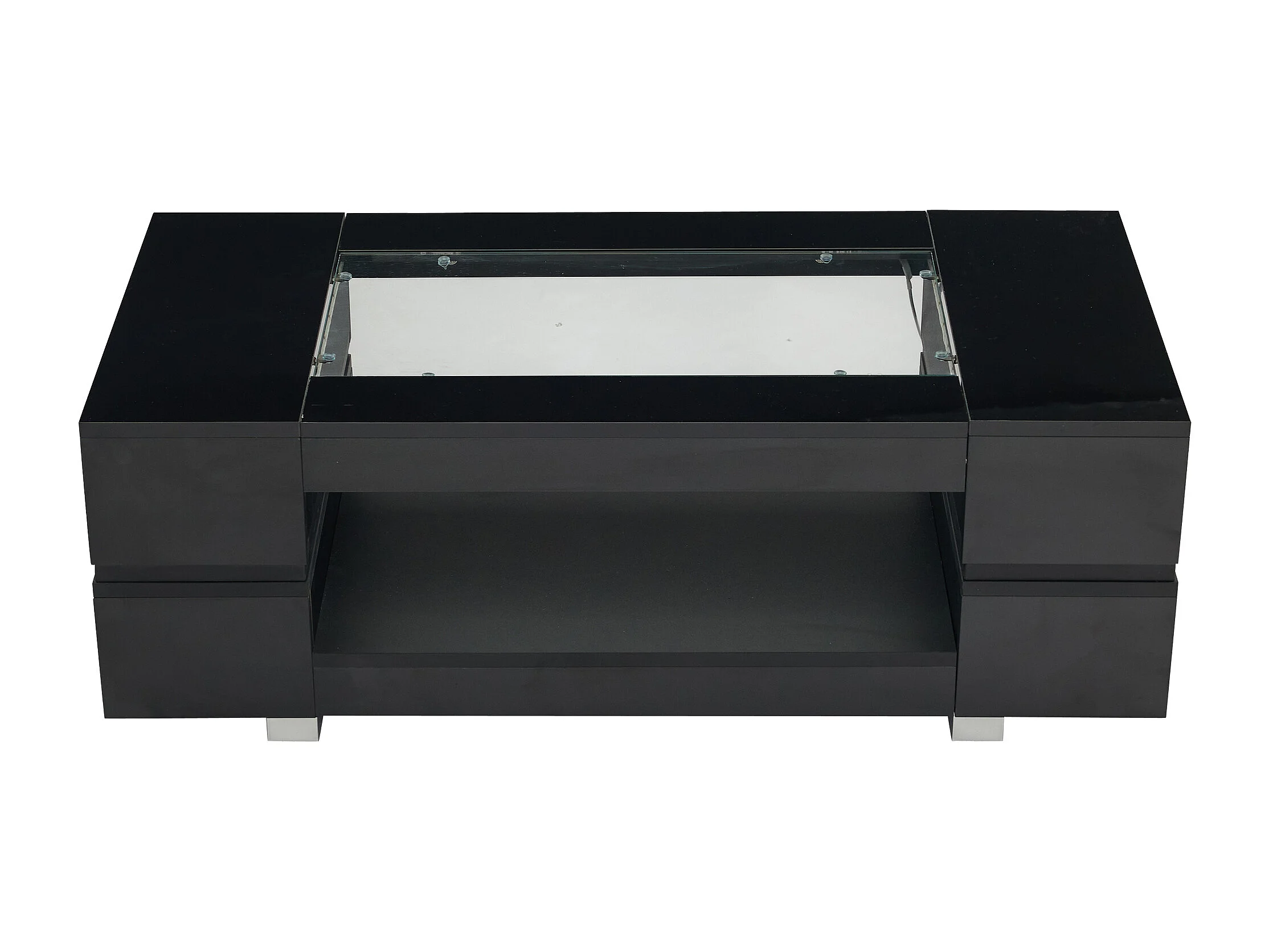 Mesa de centro LED, mesa de centro negra con almacenamiento abierto, tapa de cristal, 100 x 50 x 35 cm