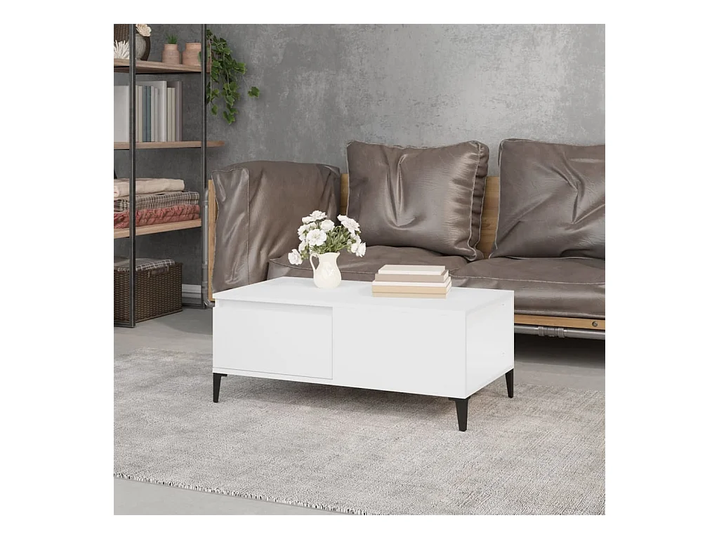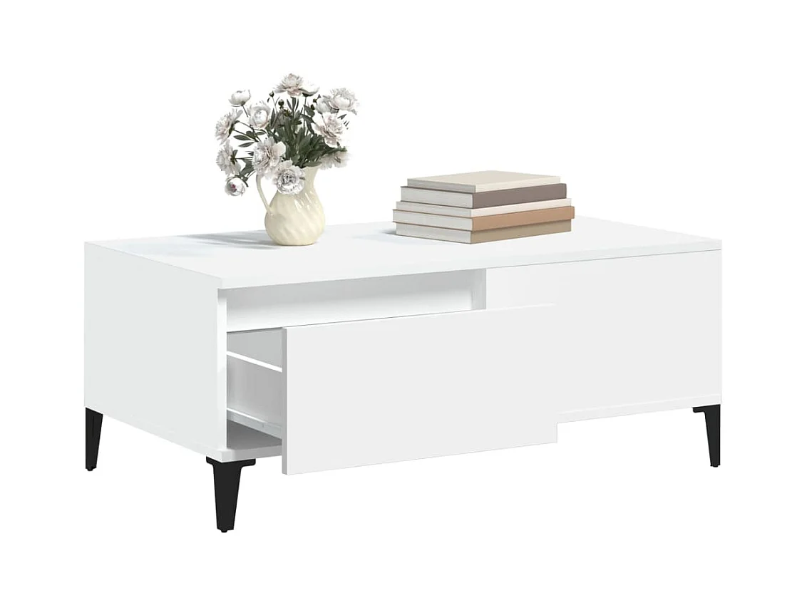Mesa de centro madera contrachapada blanco brillo 90x50x36,5 cm ES43128