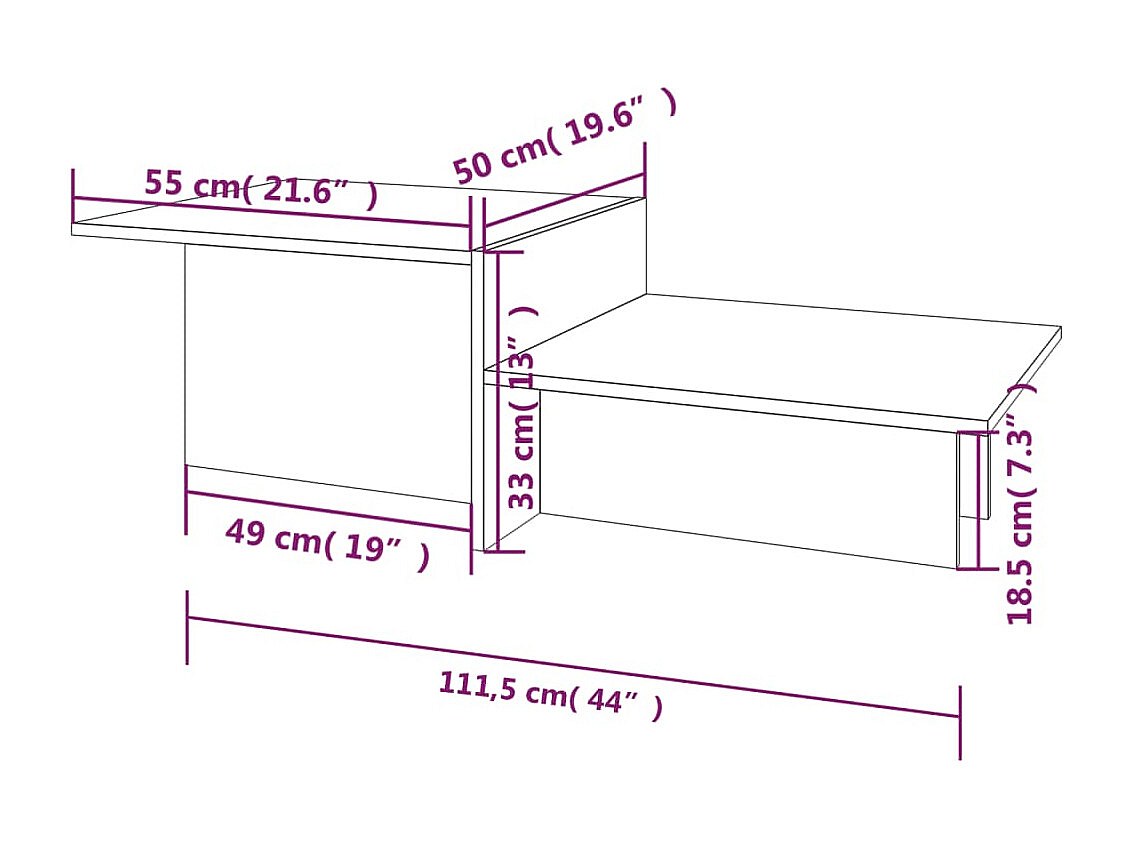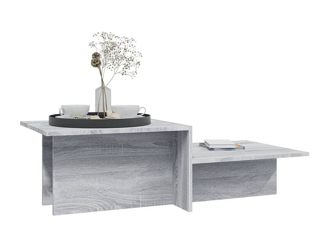 Mesa de centro 2 piezas madera contrachapada gris 111,5x50x33cm