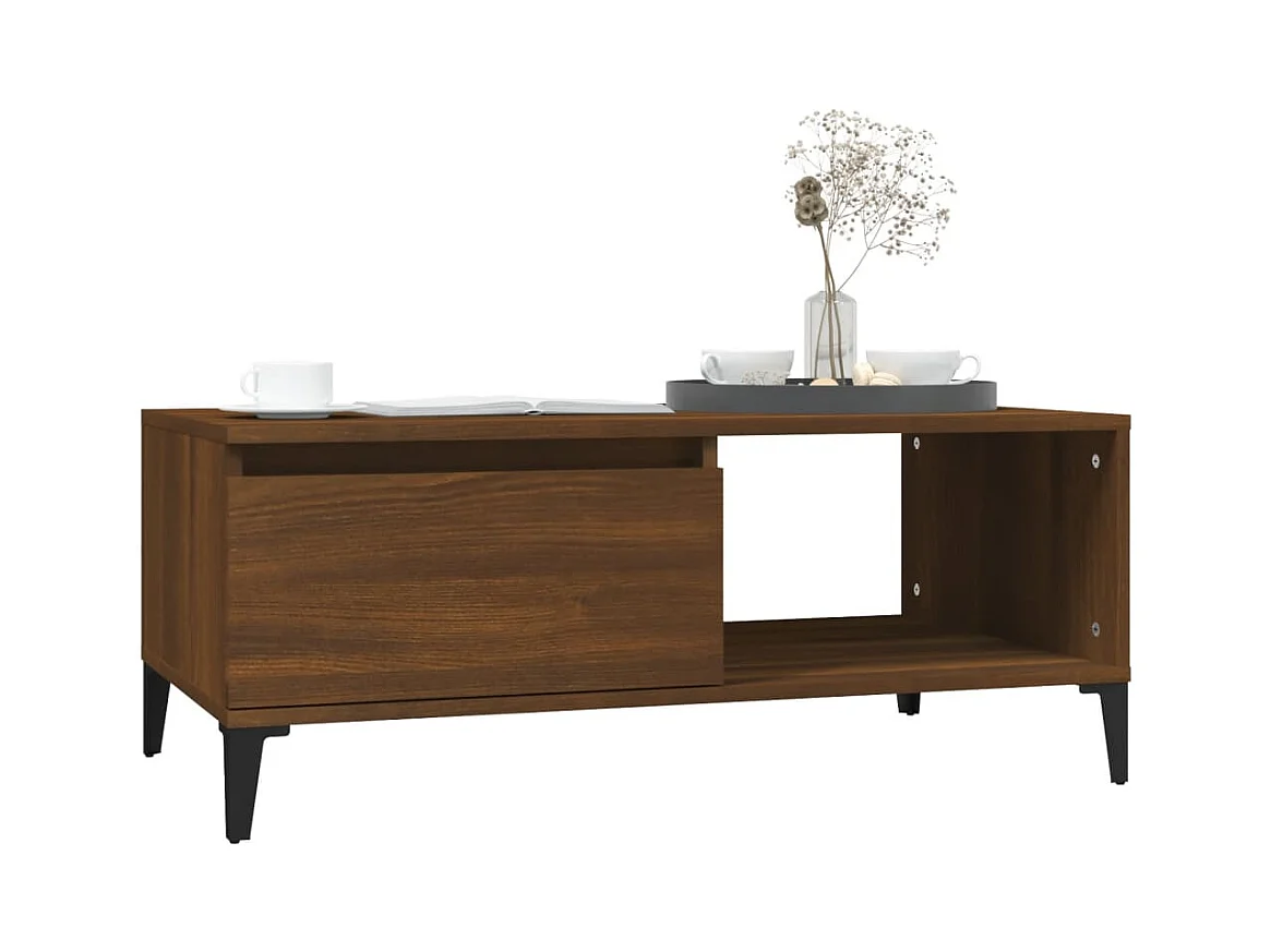 Mesa de centro madera contrachapada marrón roble 90x50x36,5 cm