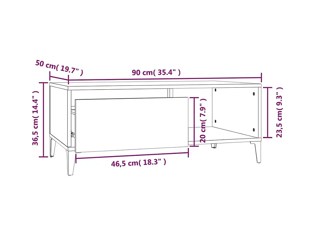 Mesa de centro madera contrachapada roble ahumado 90x50x36,5 cm