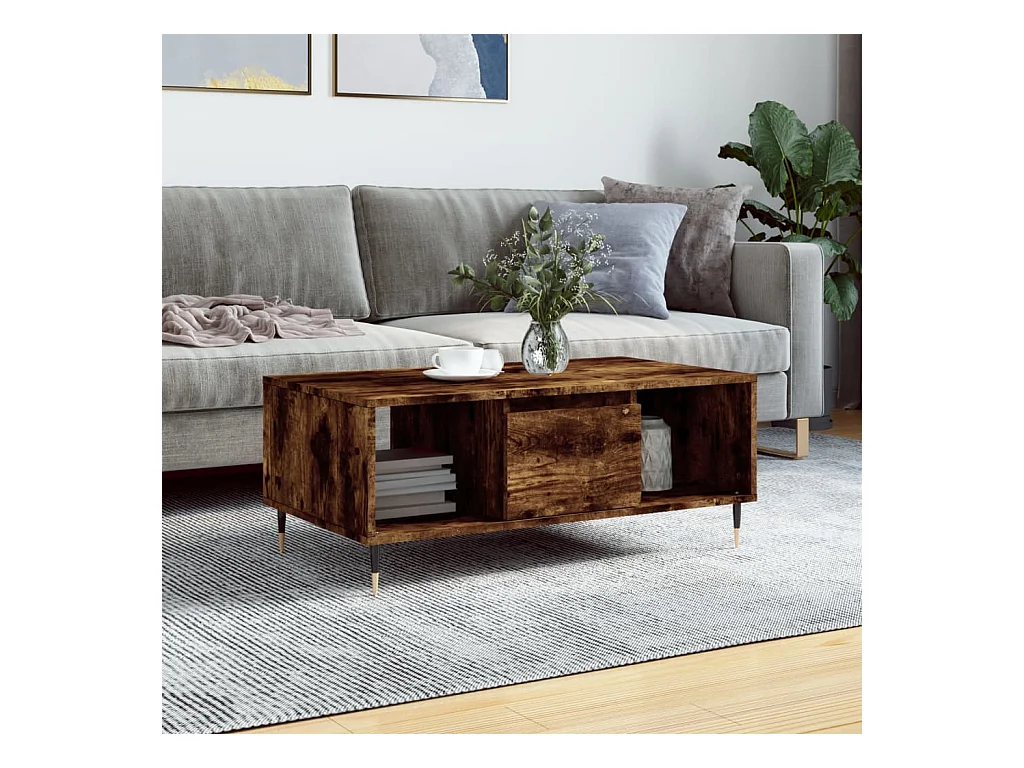 Mesa de centro madera contrachapada roble ahumado 90x50x36,5 cm ES35971