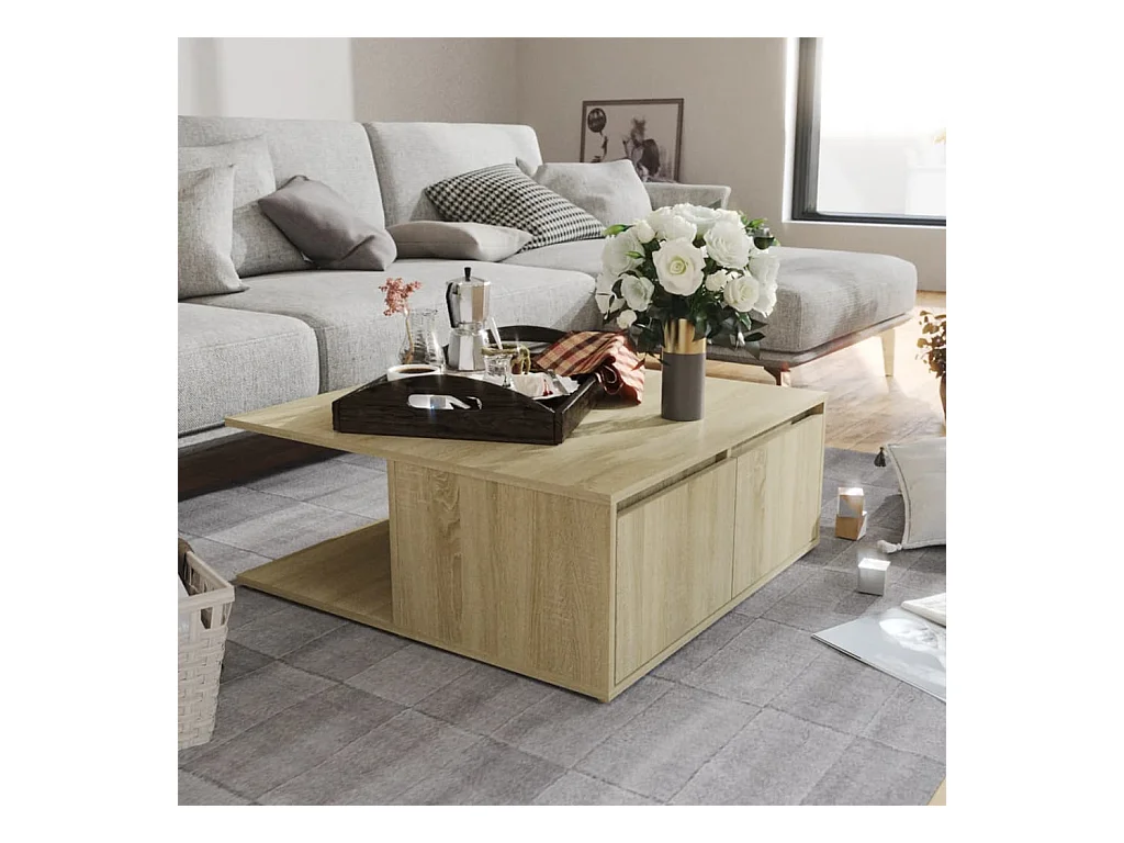 Mesa de centro madera contrachapada roble Sonoma 80x80x31 cm