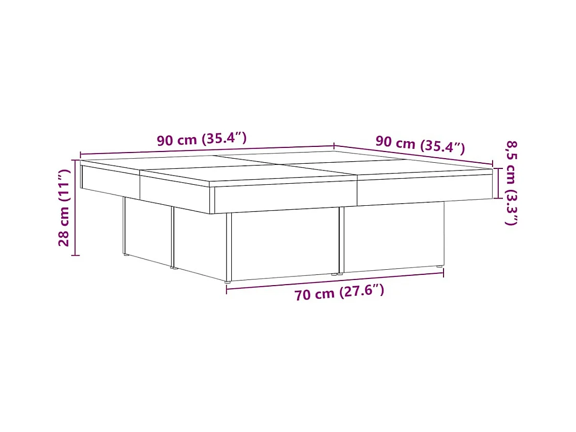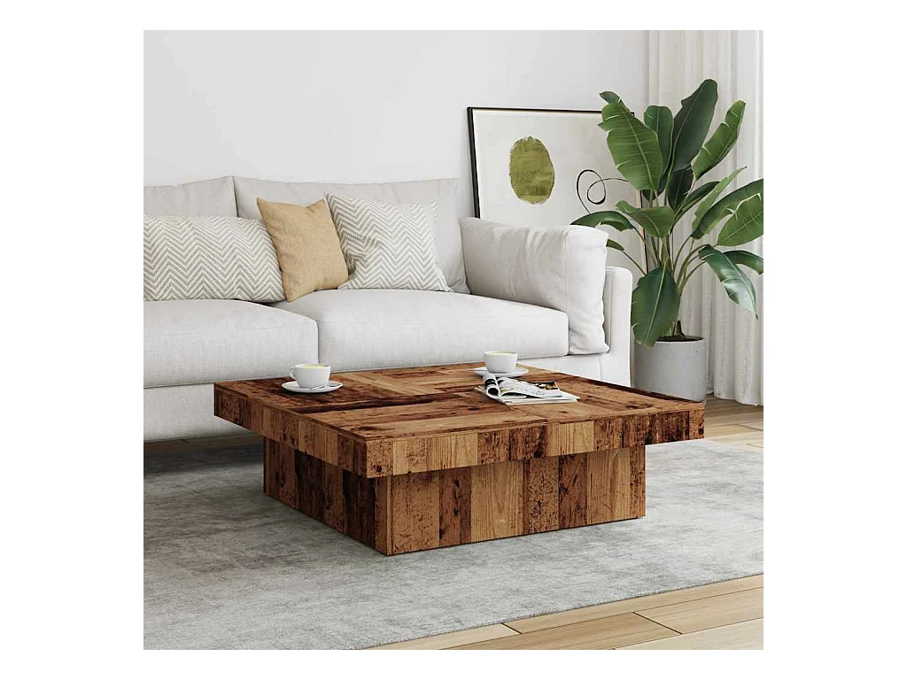 Mesa de centro madera de ingeniería envejecida 90x90x28 cm