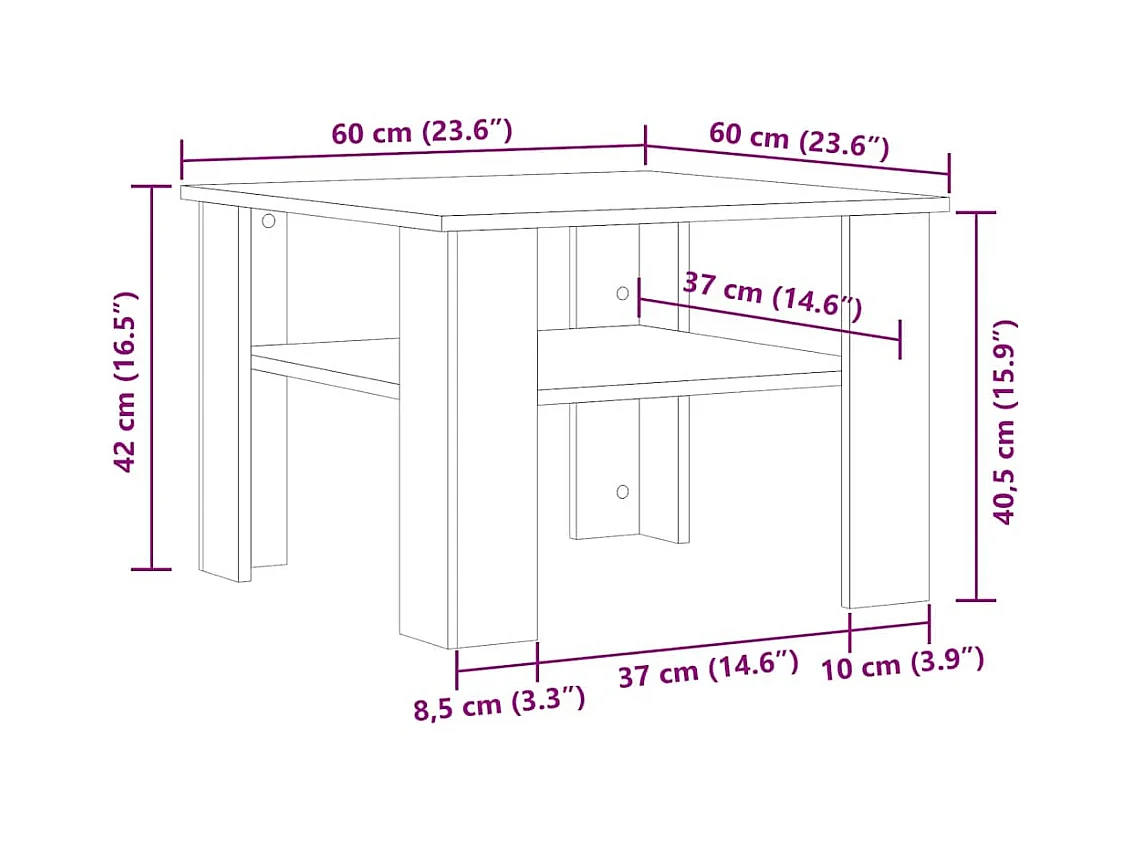 Mesa de centro madera de ingeniería roble artisan 60x60x42 cm