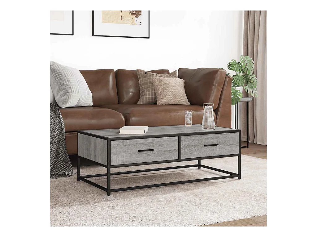 Mesa de centro madera ingeniería metal gris Sonoma 100x50x40 cm