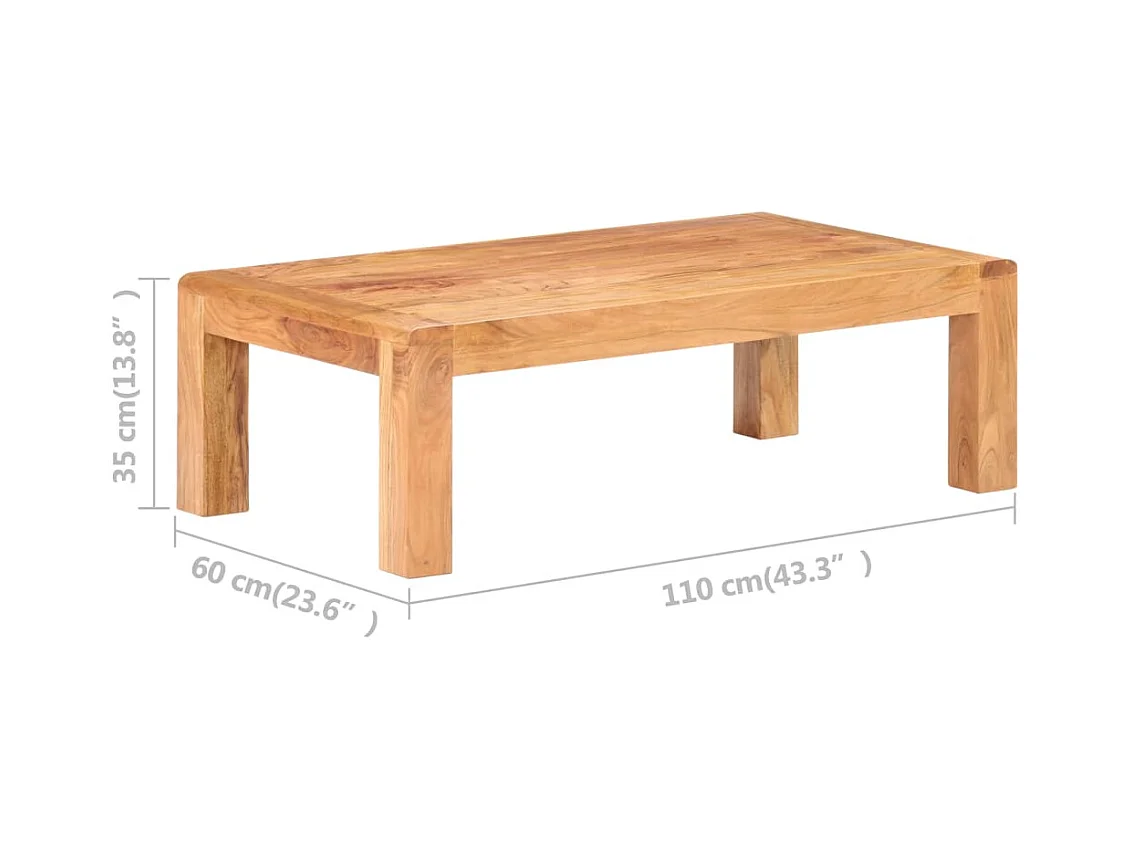 Mesa de centro madera maciza acacia acabado miel 110x60x35 cm