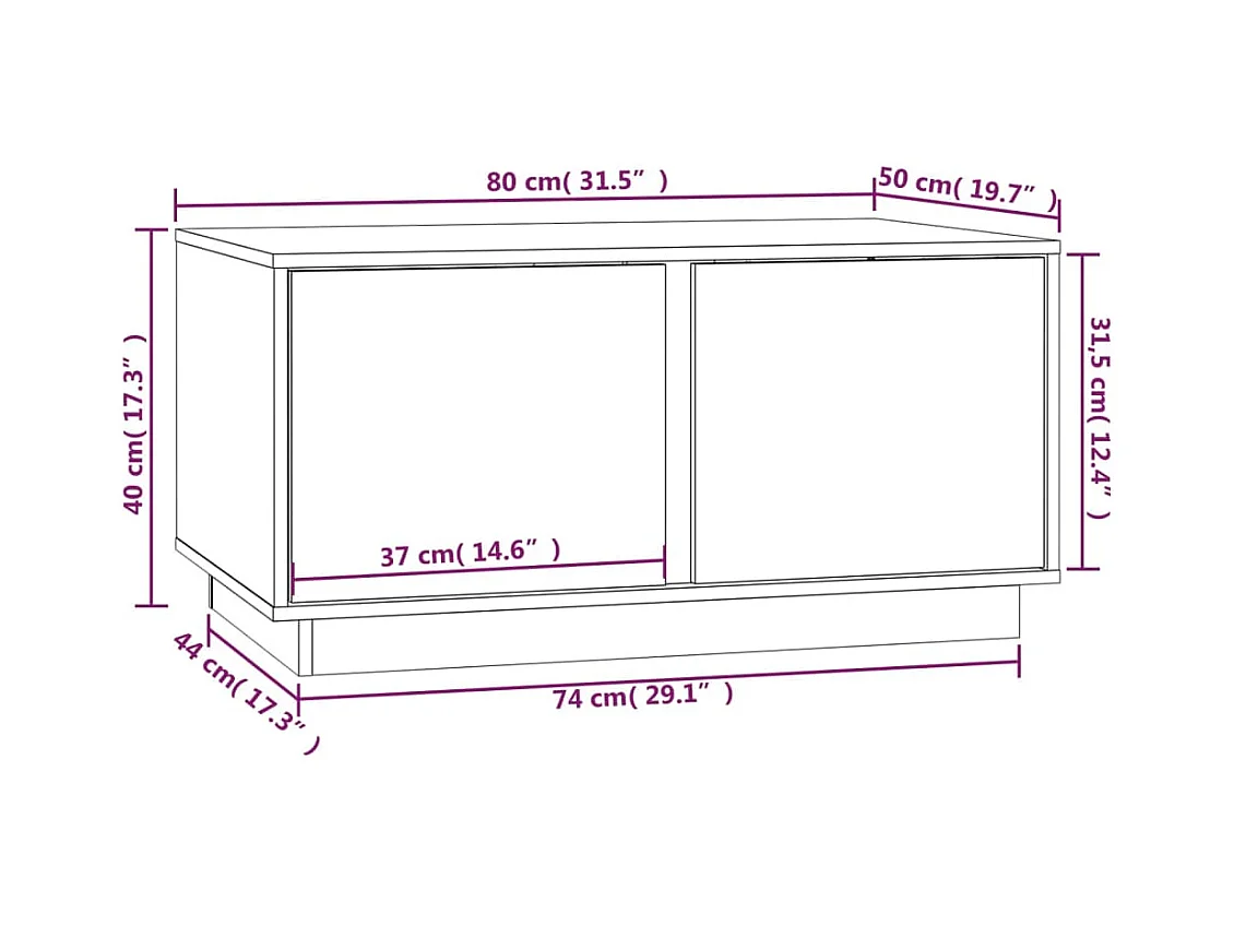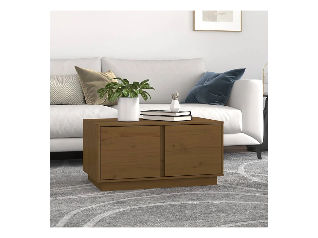 Mesa de centro madera maciza de pino marrón miel 80x50x40 cm