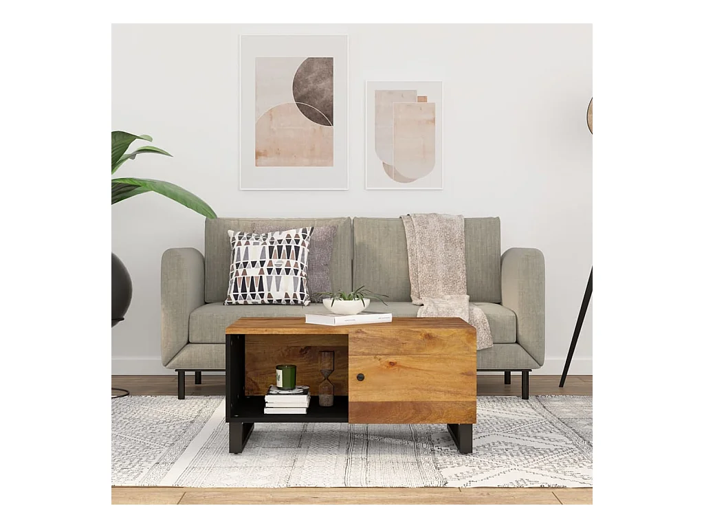 Mesa de centro madera maciza mango y contrachapada 80x54x40 cm