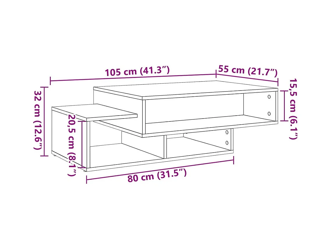 Mesa de centro de roble Sonoma 105x55x32 cm Madera de ingeniería