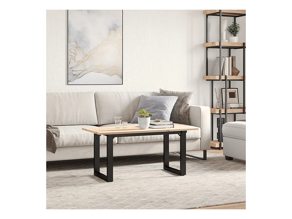 Mesa de centro marco O madera maciza pino y hierro 90x40x35 cm ES587006