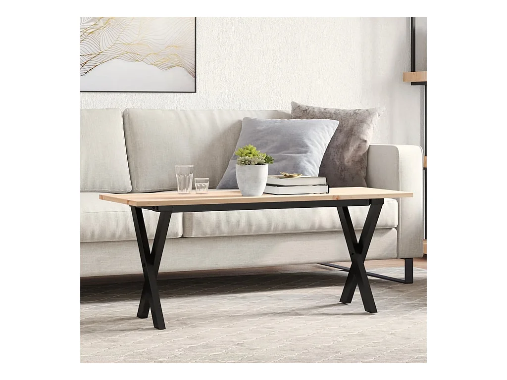 Mesa de centro marco X madera maciza pino y acero 90x40x35 cm