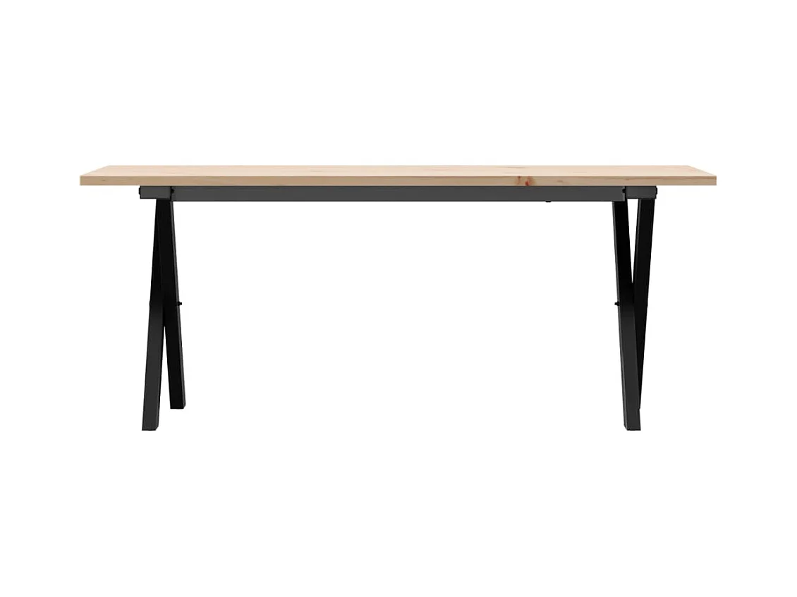 Mesa de centro marco X madera maciza pino y acero 160x40x45 cm