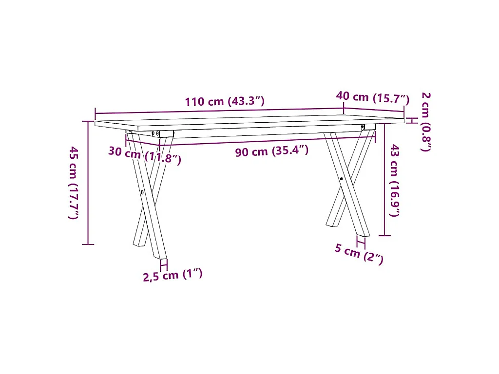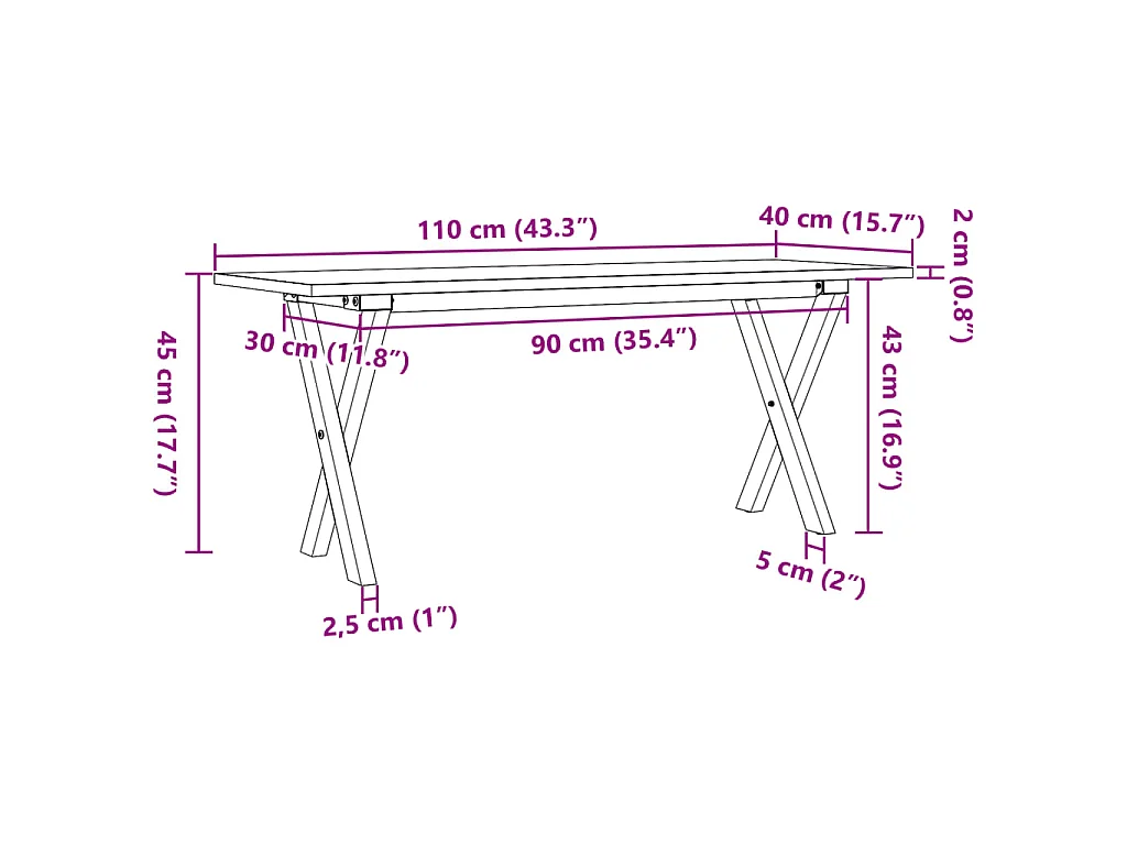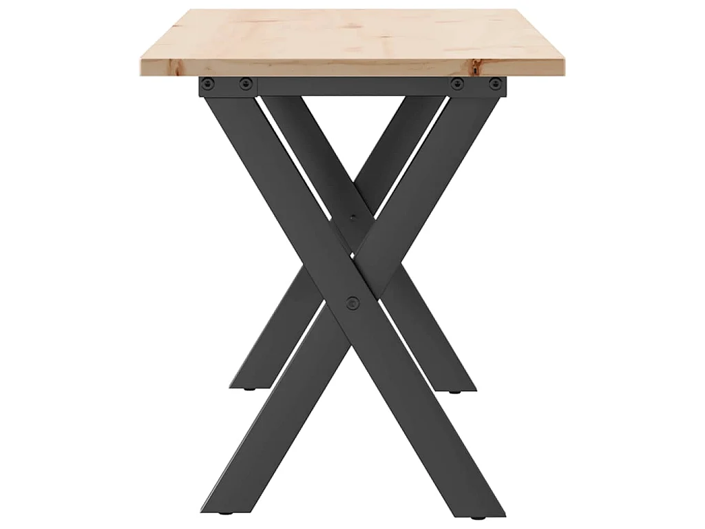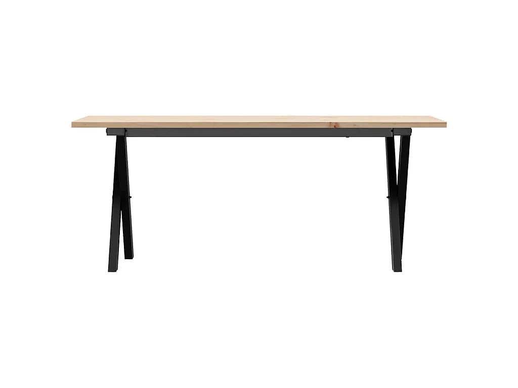 Mesa de centro marco X madera maciza pino y acero 110x40x45 cm