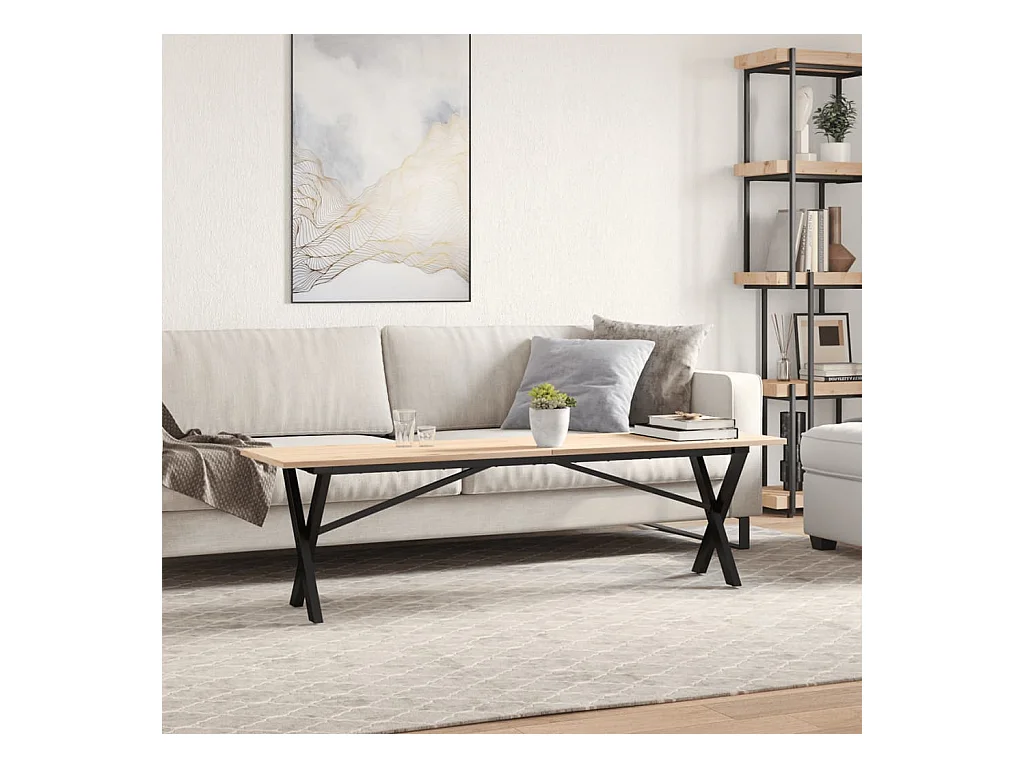 Mesa de centro marco X madera maciza pino y hierro 110x40x45 cm ES109366