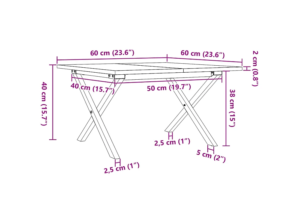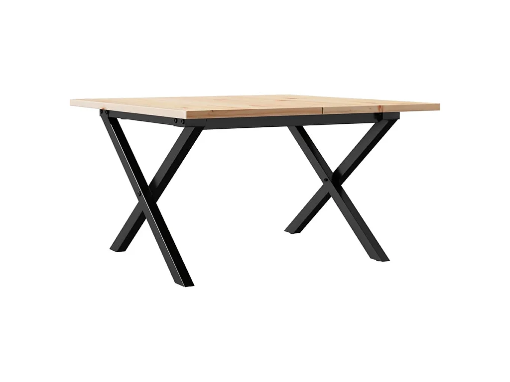Mesa de centro marco X madera maciza pino y acero 60x60x40 cm