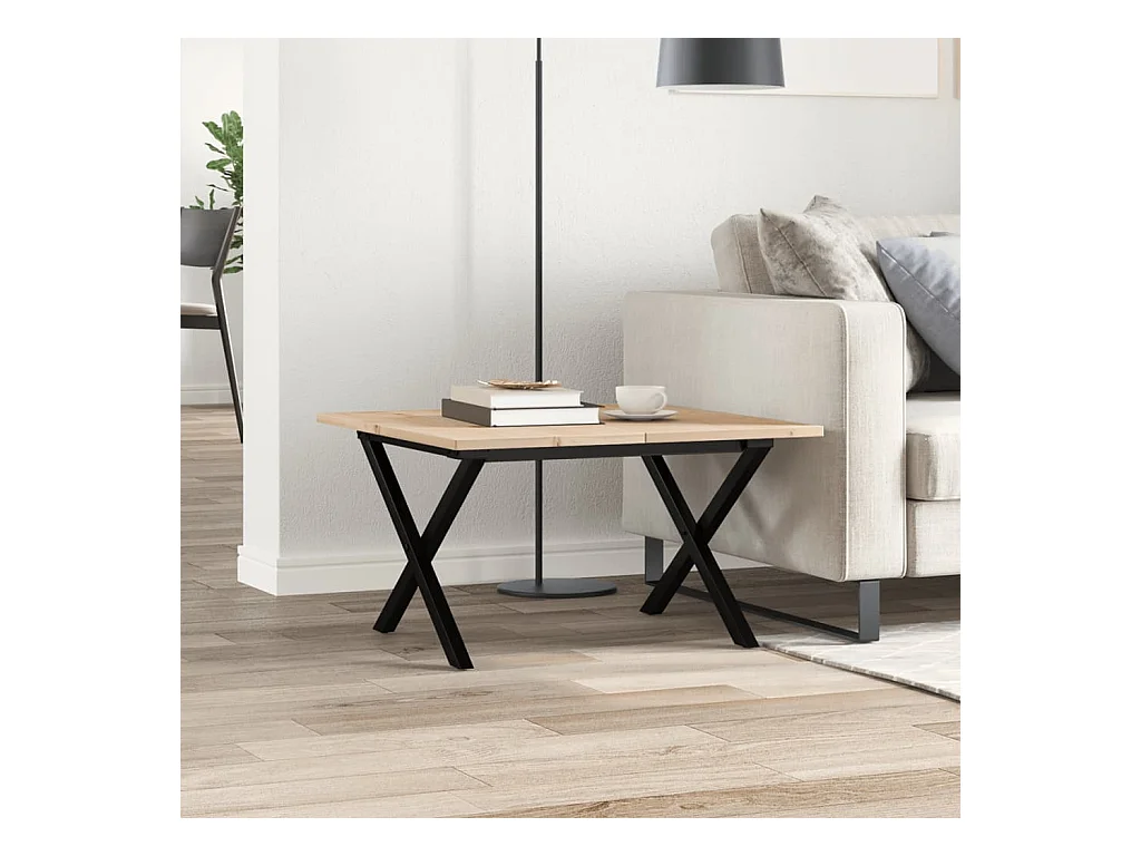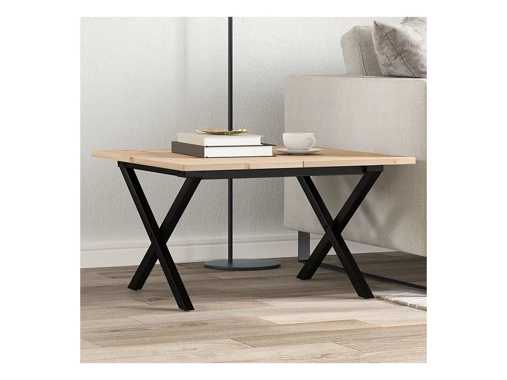Mesa de centro marco X madera maciza pino y hierro 60x60x40 cm ES706760