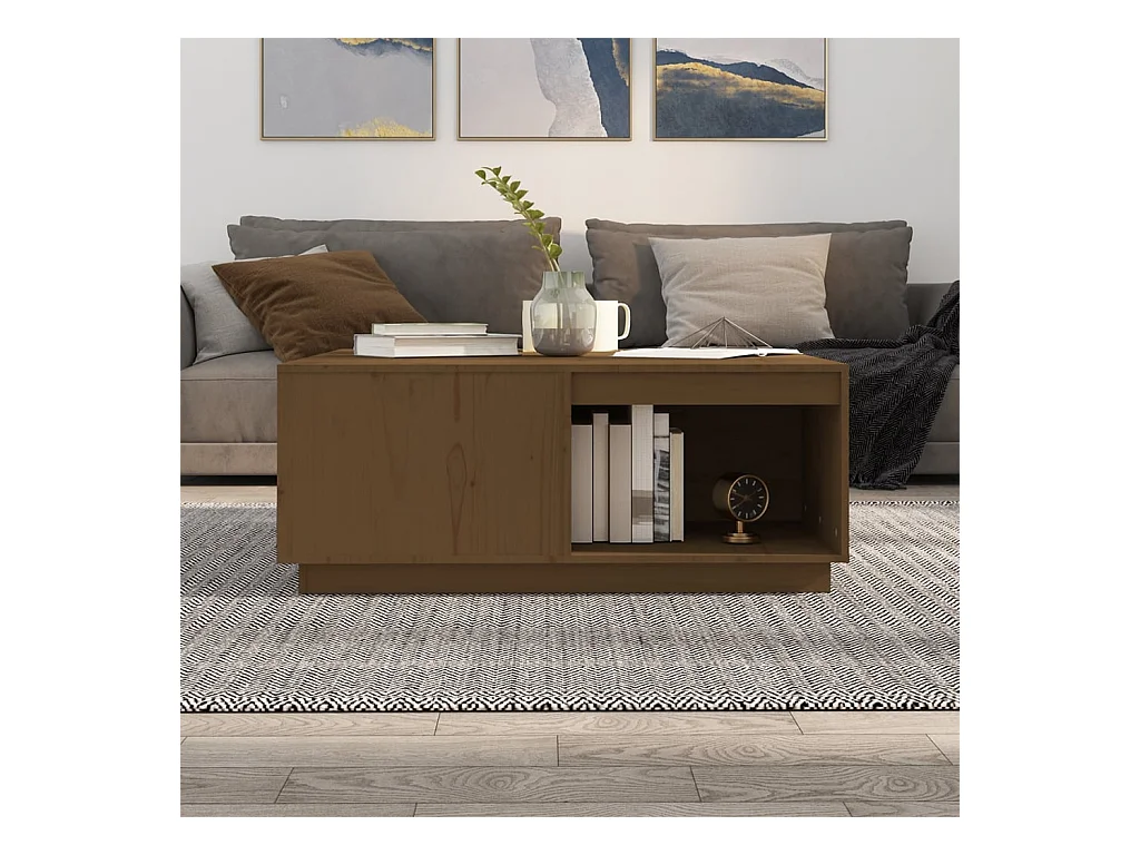 Mesa de centro marrón miel 100x101x40,5 cm Madera maciza de pino