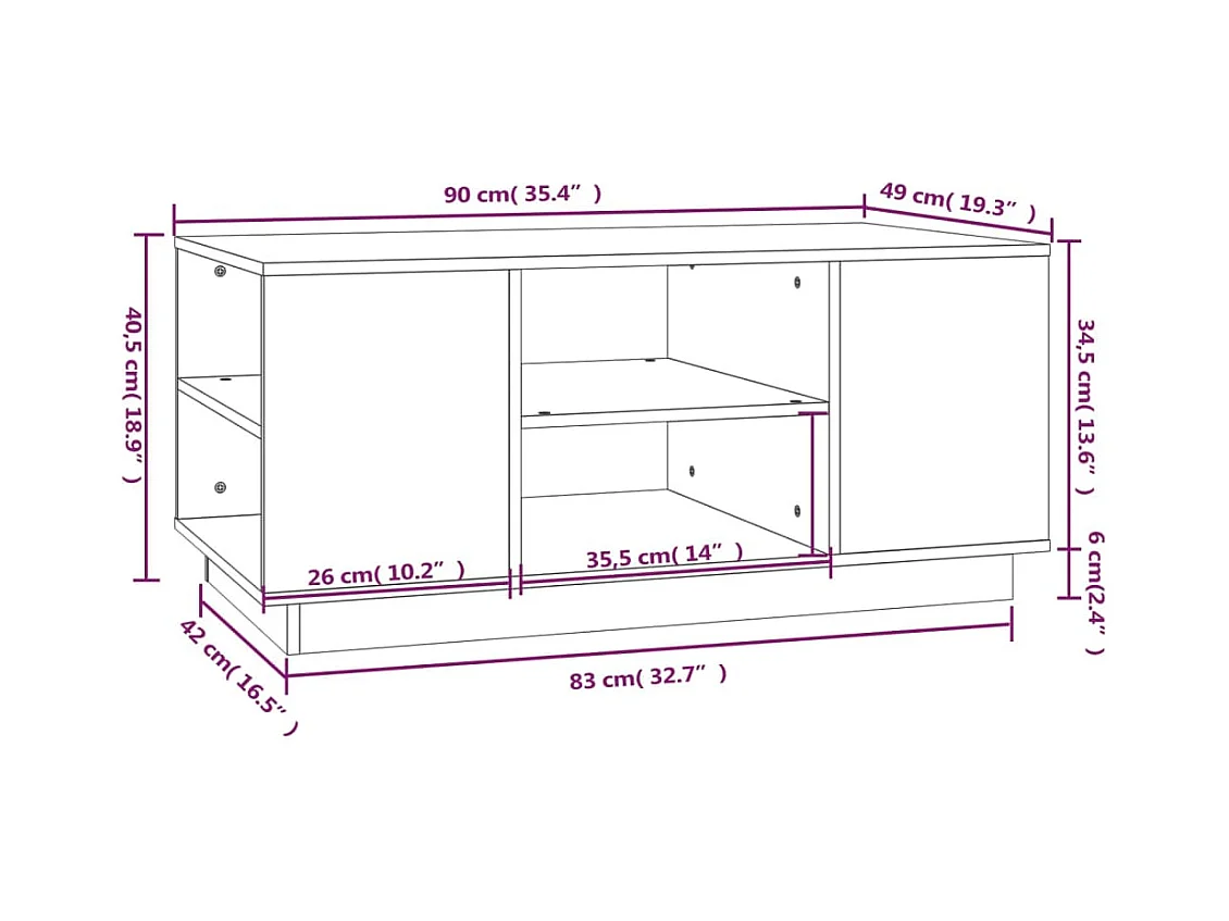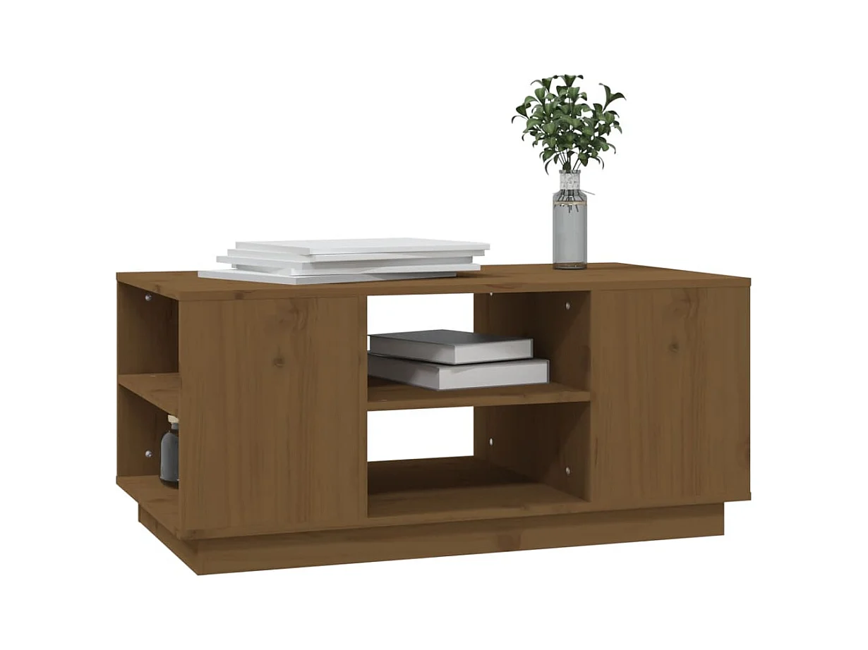 Mesa de centro marrón miel 90x49x40,5 cm Madera maciza de pino