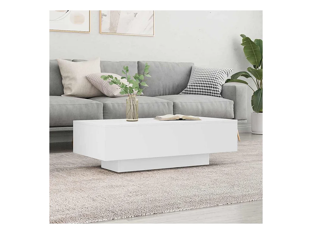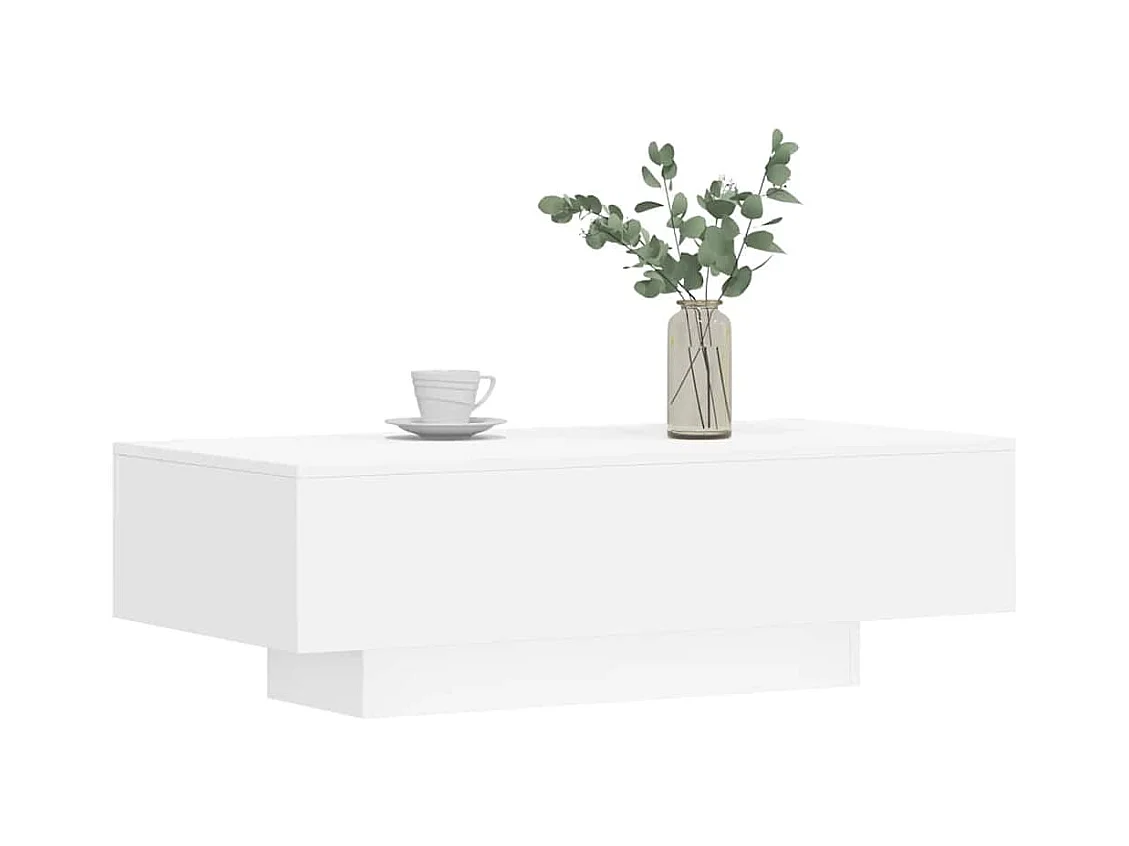 Mesa de centro de alto brillo - 100 x 50 x 46 cm - con LED - en forma de V - aglomerado - blanco